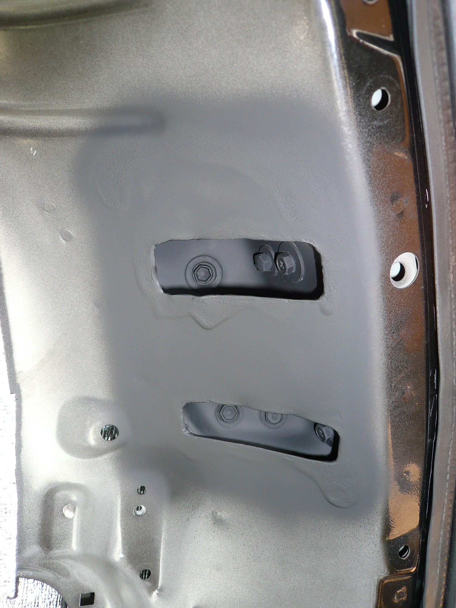 На первое время пока думал как сделать усилители я вопреки всех предупреждений прикрутил калитку на большие шайбы. Шайбы сделал из металла 2-3мм по форме протекторов(я не знал что эта за хрень и решил заказать) Оказалось эта плёнка которая клеится на внутреннюю часть крепления калитки. Назначение её можно трактовать по разному факт что её можно вырезать самому.