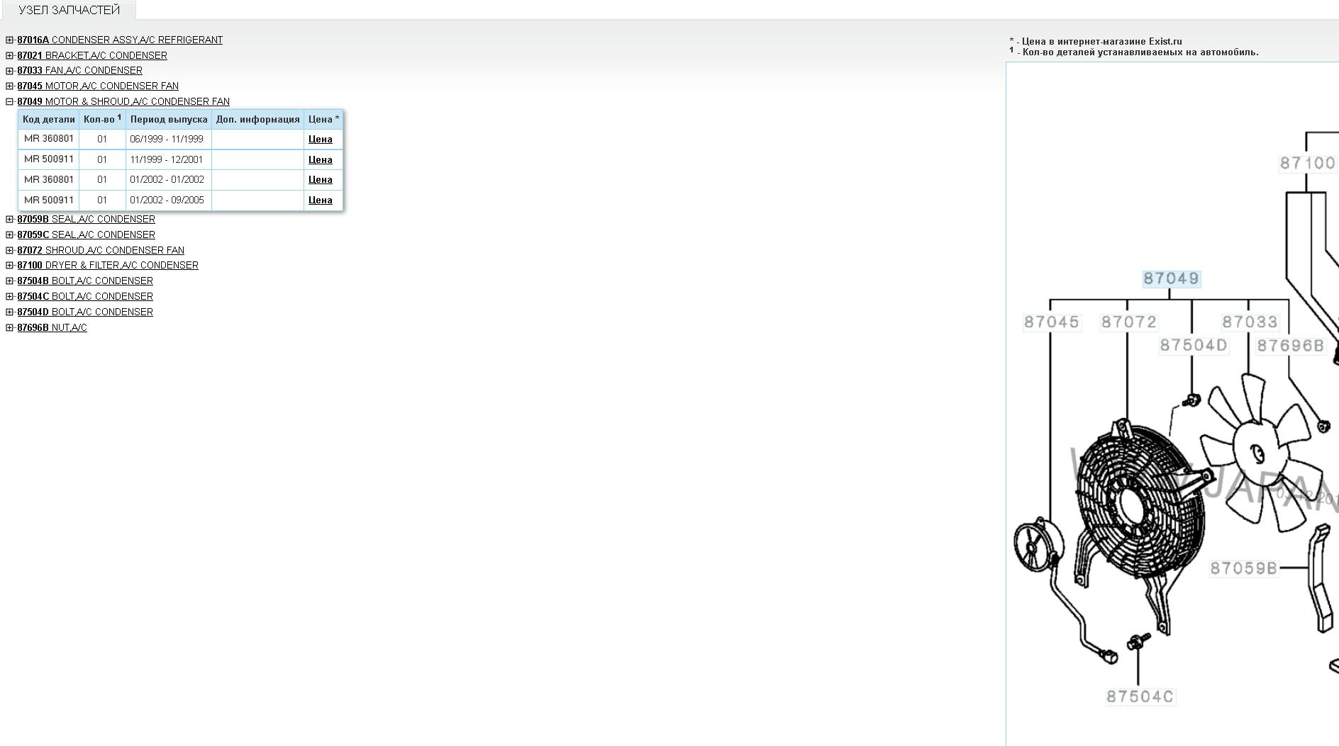 Например вот вентилятор с диффузором, который на дизеля тоже устанавивается http://carsbody.ru/product/difuzor-kond ... torchikom/ номер MR 500911Banderlog писал(а):А поподробнее... Про цену вопроса. Если действительно копейки - то я мож тоже себе воткну. А в идеале - кинулся кто-нибудь бы тут номерами всего необходимого для установки сего девайся...DenVer писал(а):Цена вопроса копейки, установить можно самостоятельно.... чего гадать?