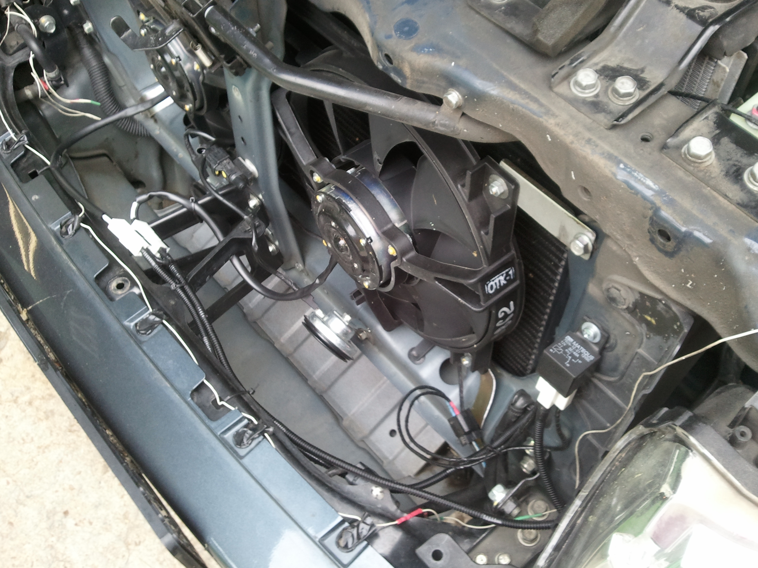 Всем привет, поставил вентилятор от десятки, пропеллер поставил от нивы, чтобы лопасти были направлены правильно. Так же поставил реле в штатное место блока предохранителей. Фишка питания находится за решеткой радиатора. цена вопроса 1200 р. Для того чтобы поставить его в штатное место пришлось поработать болгаркой. Помыл радиаторы. На улице +40 в машине холодно.