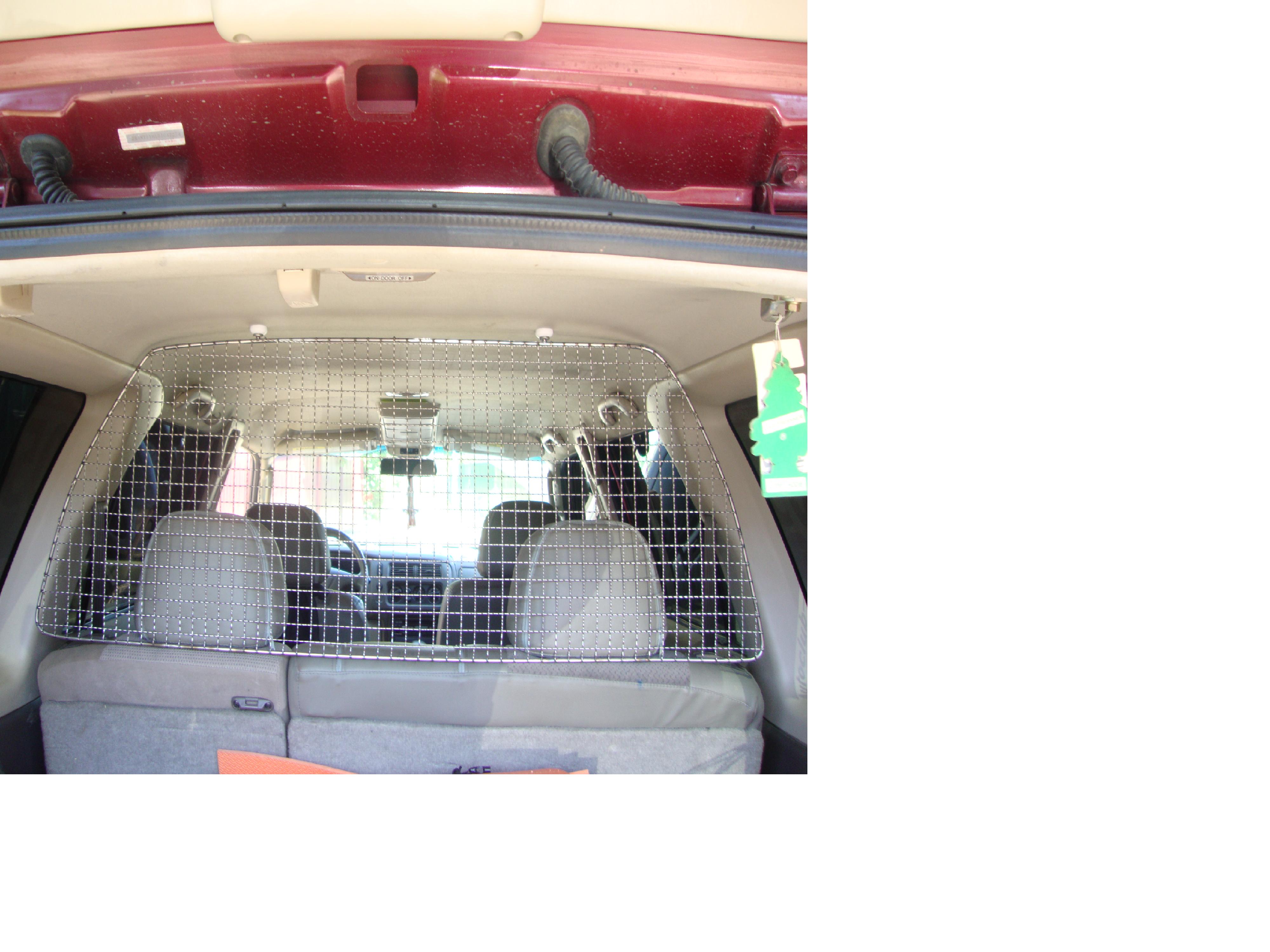 На днях купил в Ашане сетку для собак (еще не успел поставить) судя по инструкции закрывает пространствло от пола до потолка и от одного борта до другого. Цена 125 рублей. Я купил, что бы закрыть пространсточто б вещи из багажника не прилетели в салон при резком торможении.