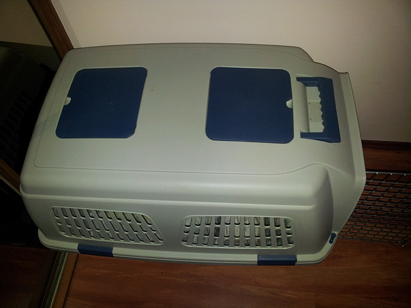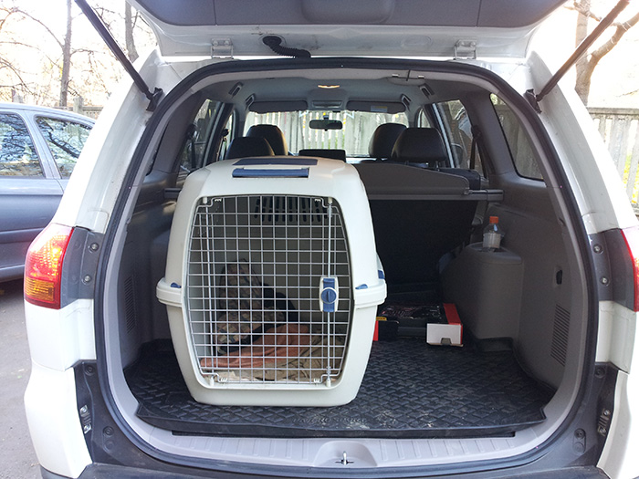 Вот у меня поэтому в багажнике и ездит. В контейнере. А чистенькой разрешаю иногда ездить на заднем сидении в гамаке.