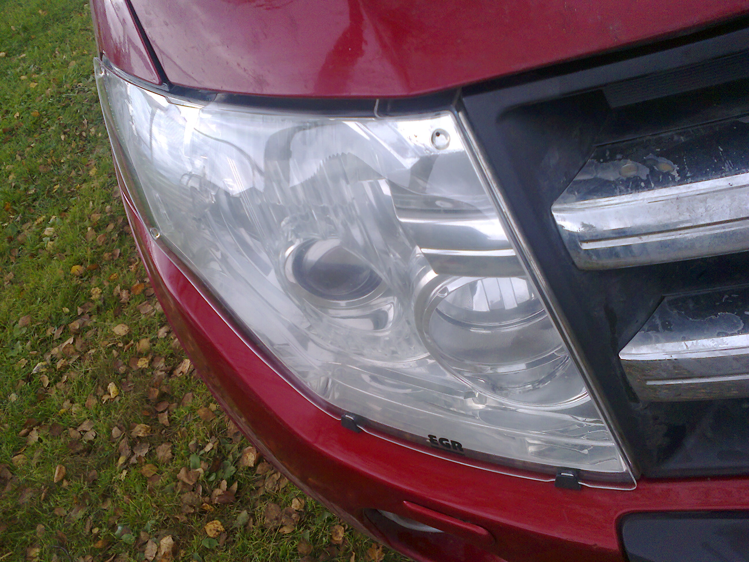 Сфотал.Машина правда грязная как свинья.Мухобойка крепится на клипсы(клипсы меняются на те что с мухобоем) за который прицеплена резинка уплотнительная капота.Дефлектор капота EGR 2100руб,и защита фар тоже EGR/