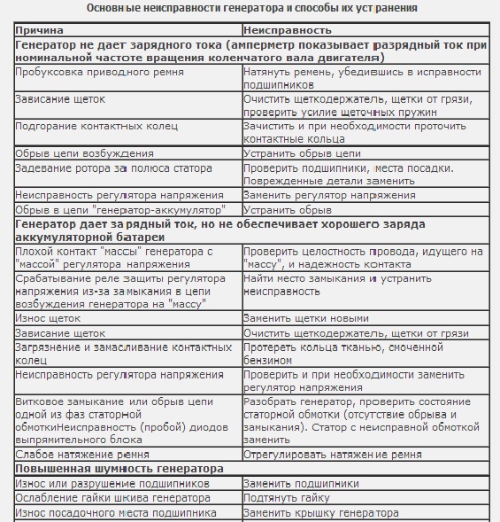 - повреждение или ненадлежащая регулировка регулятора напряжения.