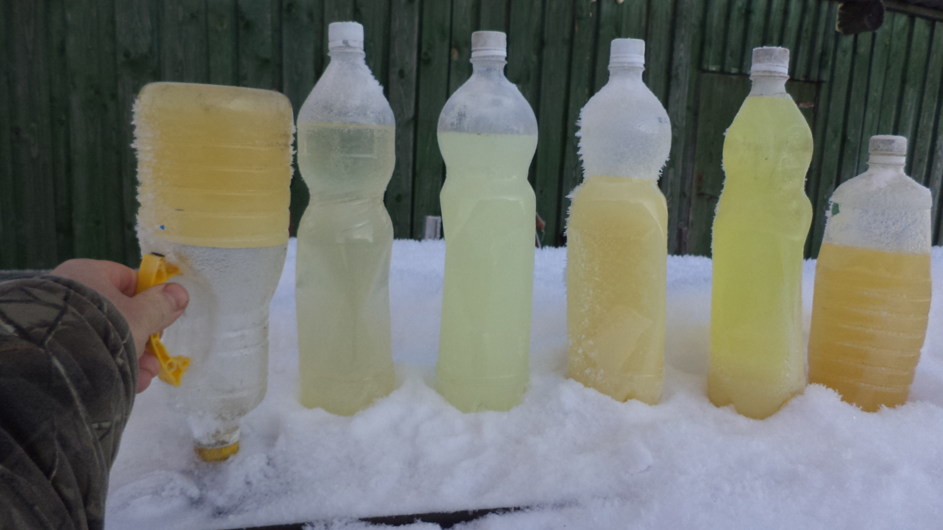 Фотки дт зимой(правда прошлогодние но не думаю что ситуация сильно изменилась) с 6ти разных заправок(в основном Москва и область),грузовики в прошлый год навозили.Мешайте с антигелем.sn1 писал(а):Зачем такой "геморой". Если редко заправляешься лей с 1 декабря по 1 марта антигель. Копейки денег, вреда нет, ..опа в тепле, мозг свободен от бестолковых забот.Дедон69 писал(а):А солярку можно ведь и канистру сначала налить,и проверить особенно если вы заправляетесь редко.