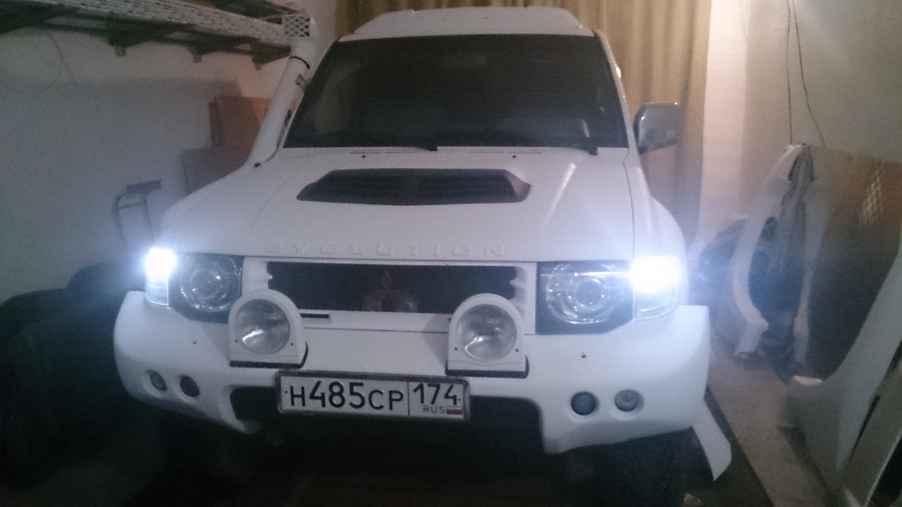 Приветствую единомышленника. Я немного по другому пути прошел. У меня был обычный рестайл, приобрел обвес от Эвика, и перекрасил в белый Line-X. Много работы внутри проделано. В головной свет поставил биксенон Hella, в габариты DRL от Таурега. Удачи и респект.