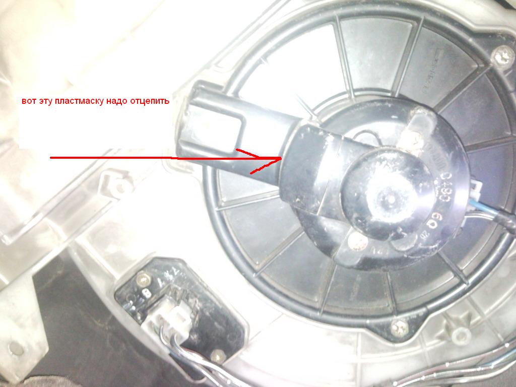 Ремонт начался с проблемы №3 как оказалось что у пыжиков стоит мотор от фирмы DENSO точно такойже как у большинства тойот (от королы до крузака) разница только в том что у Пыжа сама крольчатка и кожух (пласмасска куда моторчик всунут) меньше чем у тойоты.я взял от тойоты чайзера96г.в Решаеться этот трабыл так: нам понадабиться фен промышленный который от 400 цельсия дует (можно и простым просто дольше) отвертка и друг (который поможет вытянуть мотор из кожуха) берем отверткой отцепляем на задней часте кожуха плосмасску которая идет от центра в сторону (это воздухо вод охлаждения мотора) когда снимити берете в фен и нагреваете кожух (без фанатизма) и тут вам понадобиться друг !!! как только нагреете берете вдвоем один за кральчатку второй за кожух и тянете (если нормально нагрели выйдет легко) после этого от мотора снимаем крольчатку также путем нагрева отогнув пласмассовый фиксатор ответткой !!!! ну и потом аналогичным путем все собираем обратно предворительно смазав где только можно сей моторчег! после чего смантировав его на место наслаждаемся еле слышным журчанием моторчика при макс оборотах (слышен тока поток ветра им наганяемого)