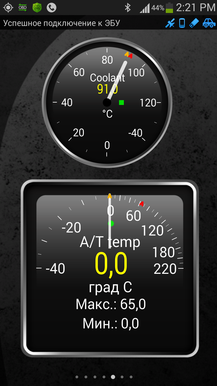 Ни как не могу настроить в программе Torque, в панели приборов отображение датчика температуры коробки (пробовал разные, ни один не кажет). В плагине Torque Scan температуру показывает.