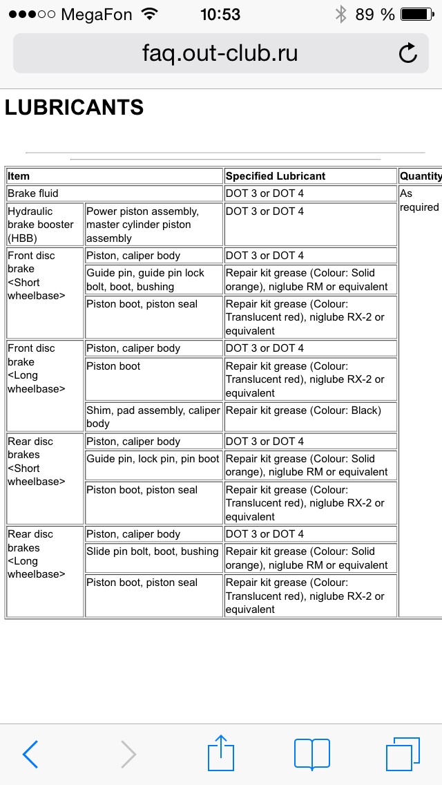 По состоянию резинок суппортов и т.п. можно сделать вывод следующий: замена всех резинок на суппортах нужно проводить на второй смене колодок задних. Перед за это время сносился три раза. Жидкость вообще по мануалам раз в 30000км?