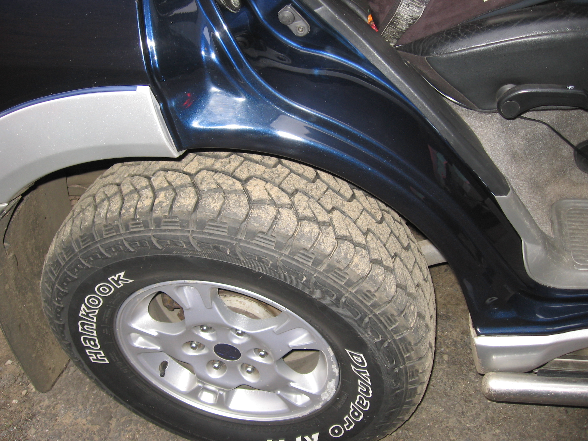 С пассажирской стороны покрасил в цвет, но краска облезла (говорила мама - не ложи на полиэфирку кислотный грунт), с водительской не стал заморачиваться, покрасил кисточкой, чёрной эмалью. Когда дети обдерут/затопчут, покрашу обе арки в цвет и накрою бронеплёнкой.