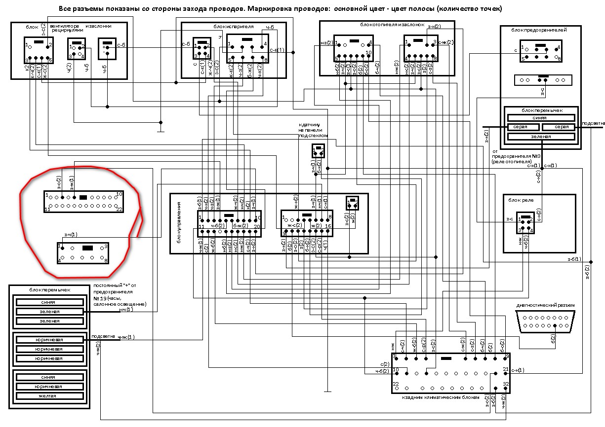Нет получится, кидай новую проводку, благо ее там не многоglazkovartem писал(а):Далее по ходу внедрения проводки, буду рисовать схему интеграции климата в родные косы. Идея состоит в том, чтобы не протягивать лишние провода, а задействовать максимально родную проводку. При этом разъемы от старых блоков отрезать не буду. То есть проводка получится универсальной и для климата и для обычного кондиционера. Всегда должна быть возможность откатиться назад))))