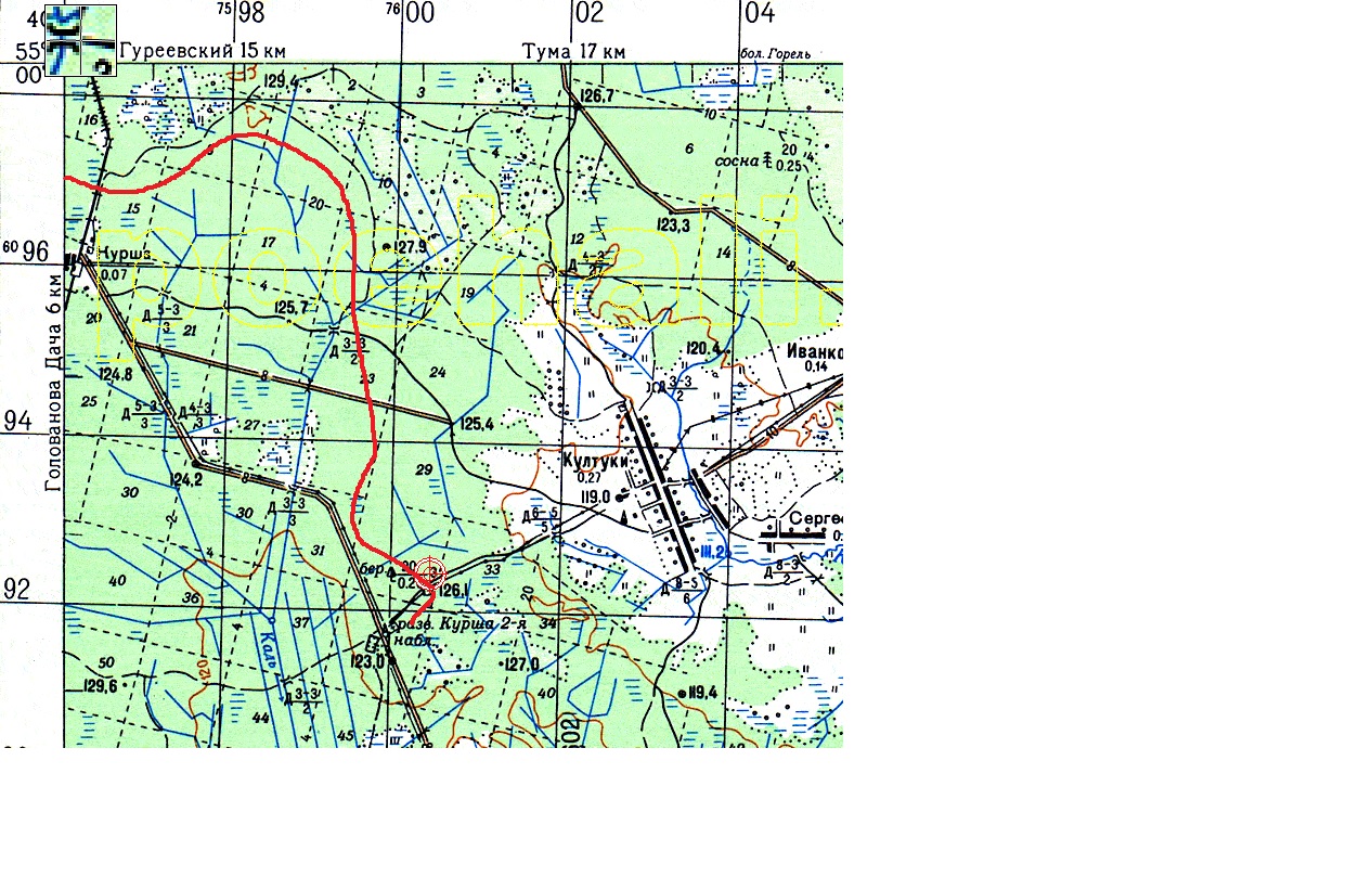 на к-2 с к-1 дорога была уже завалена и затоплена 2 года назад и надо было вернуться немного на север и в "поля" в сторону к-2, потом на въезде в лес висела табличка "дорога зашипована, проезд, проход запрещен " потому что это уже территория заповедника, но дорога была накатанная...дальше выходишь параллельно ветке старой узкоколейки и выходишь на дорогу култуки - к2 ... а на дороге с култуков стоял шлагбаум ... эту дорогу я долго искал - ну никак не давалась она. а уже потом нашел 500м. генштаб, и оказалось, что там эта дорога есть ...