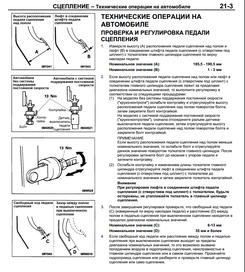 мануал по регулировке сцепления на Паджеро