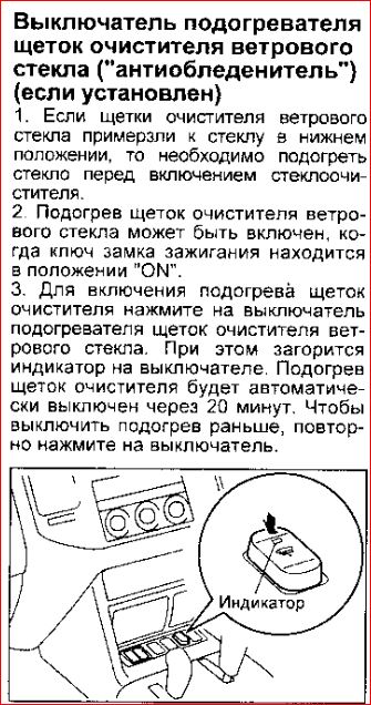 У нас с тобой подогрев стекла в районе дворников, в некоторых версиях есть электрообогреватель воздуха салона с отдельной кнопкой HEAT что позволяет нагреть воздух салона не зависимо от температуры охлождающей жидности двигателя.