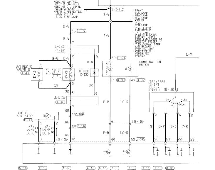 всмысле? схема электрики раздатки на п3, разве не? с блока j/b идёт плюс на катушку соленоида, В-07 второй выход катушки замыкает на землю в положении ON, при включении В-07 всё хорошо, при отключении на катушке появляется обратный ток (самоиндукция), который диодик и гасит. обычно вообще его ставят либо прям рядом с катушкой (если работаем в помехо-зависимом окружении) либо в непосредственно ЭБУ (так проще и удобнее)Схема то не от этих "качелей".