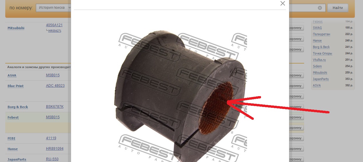 ...как раз на фото НЕ ОРИГИНАЛ, а заменитель от компании FEBEST под номером MSB015...!!! Фото оригинальных найти не смог, поэтому и сомневаюсь... Отпишитесь кто менял уже - снятые скрипучие резинки с прослойкой материала или нет?Виктор74 писал(а):Под номером MR554271 идет только начальная позиция.