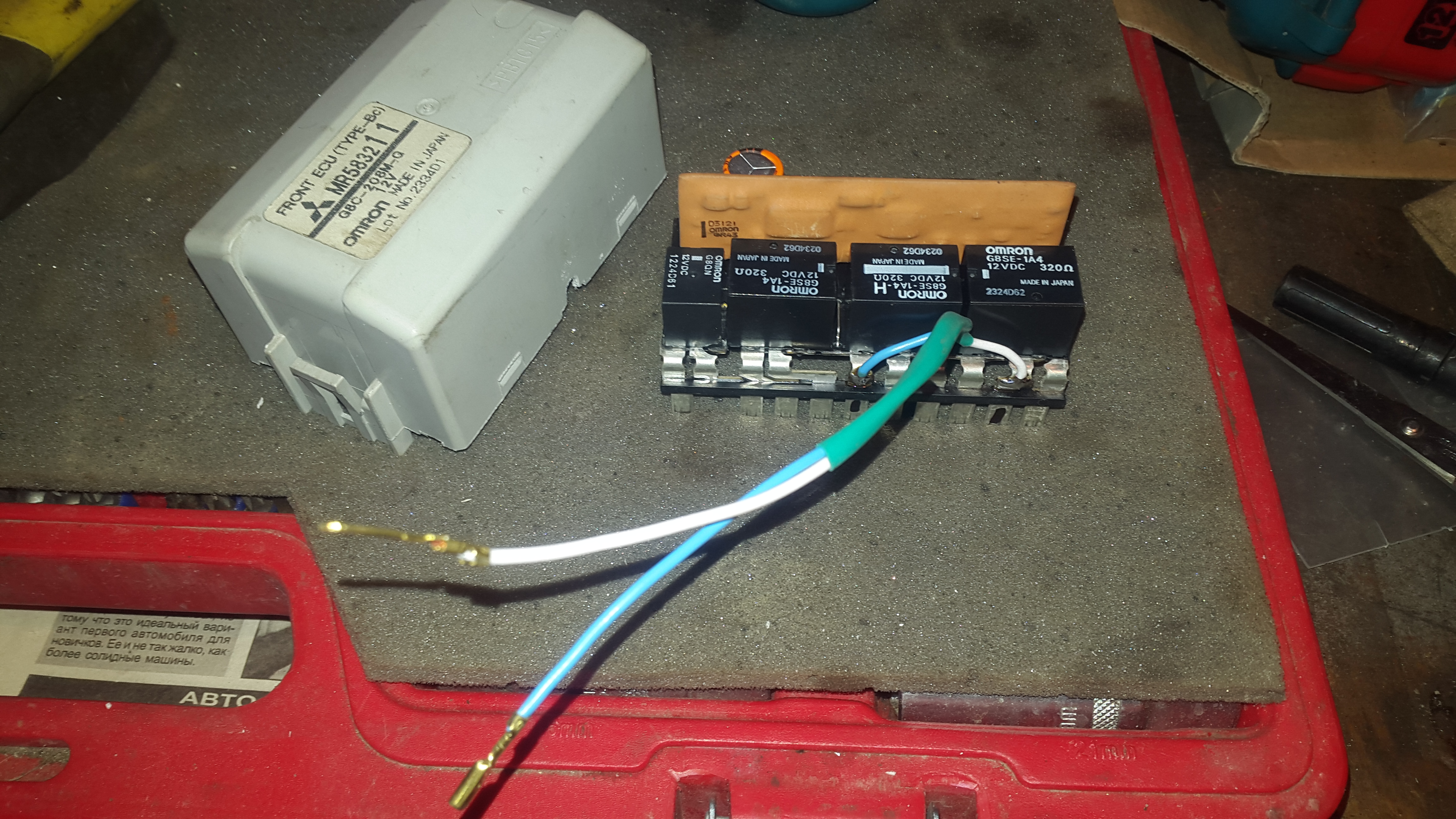 Под реле я купил клеммы ножевые в радиомаге. Надо два типа 4,8 и 6,3 мм по две штуки...ну и клещи обжимные. Или поискать в магазинах уже обжатые...можно из разъемов... Или купить колодку под реле и вытащить оттуда. Я колодки не нашел, было проще купить клеммы.