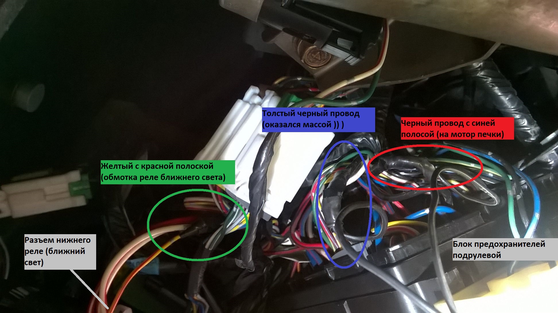 На обратной стороне блока найти два толстый провода: черный (масса) и черный с синей полосой (идет на мотор печки с замка зажигания) Вот сейчас вроде все просто, а я 2 года не мог до ума довести ))