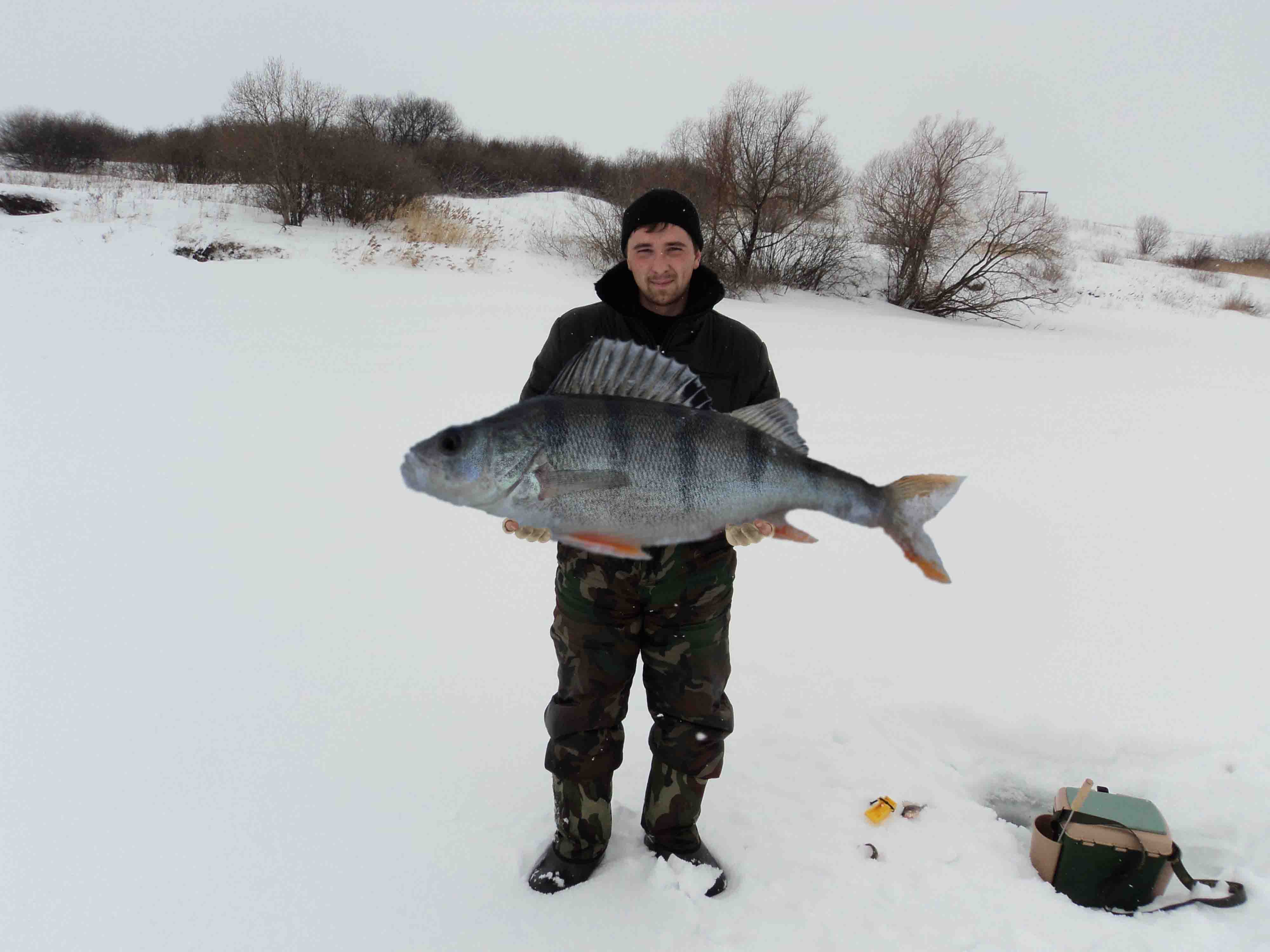 ну а для поржать,вот братуха выловил окунька!