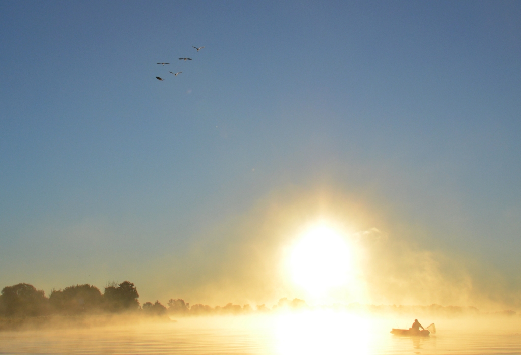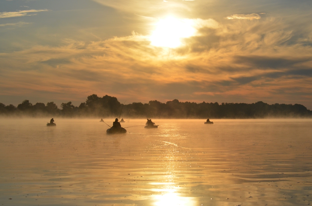 а вообще красиво на Днепре: утром уже туманы, лебеди летают, да и рыбаки в стайки сбиваются, стоит прослышать об успехах другого...