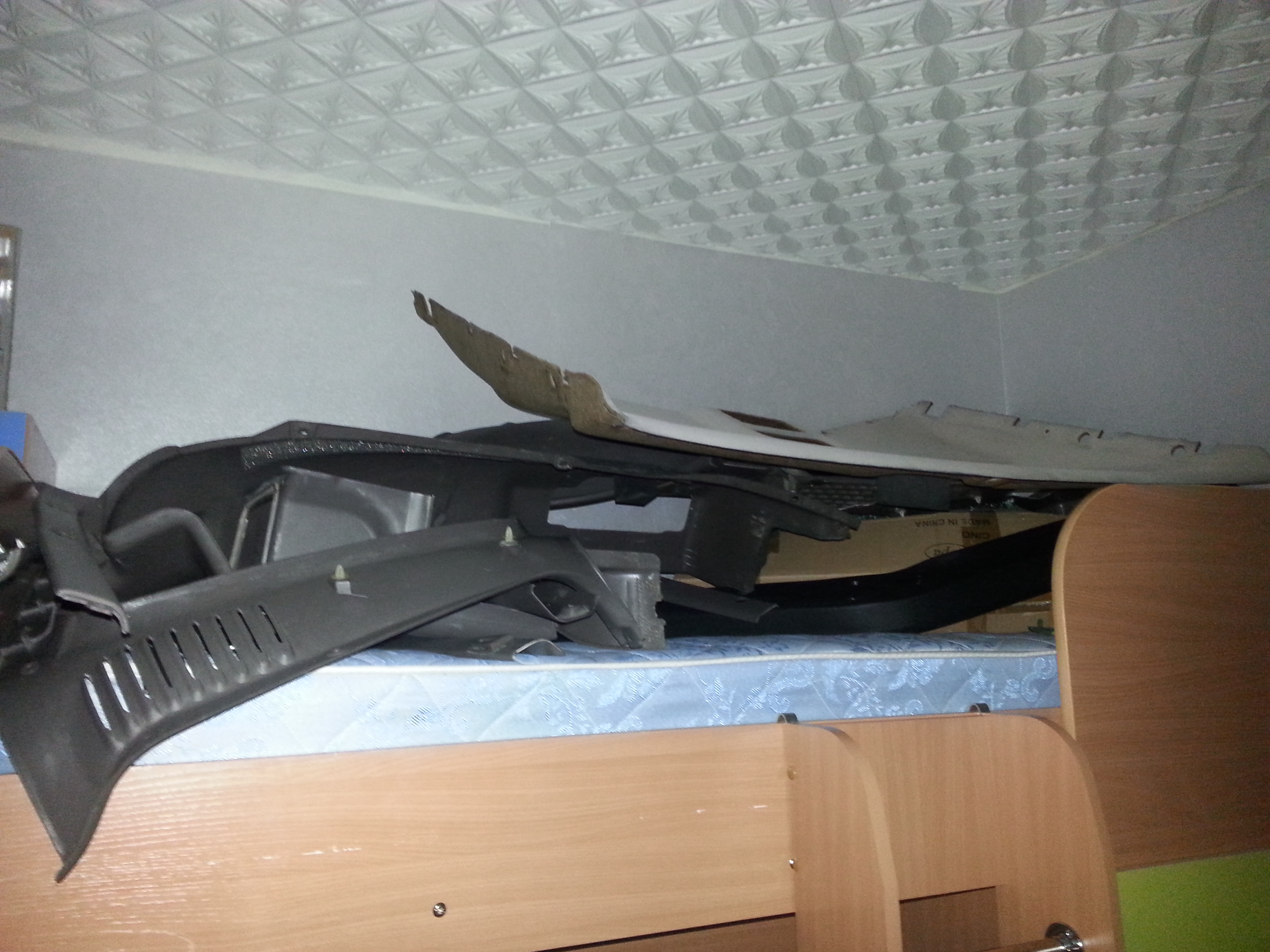 Другая часть потолка и пластик салона пока живет на 2-м ярусе детской кроватки (пока младший сын еще совсем маленький и спит в кроватке) второй ярус как склад временного хранения