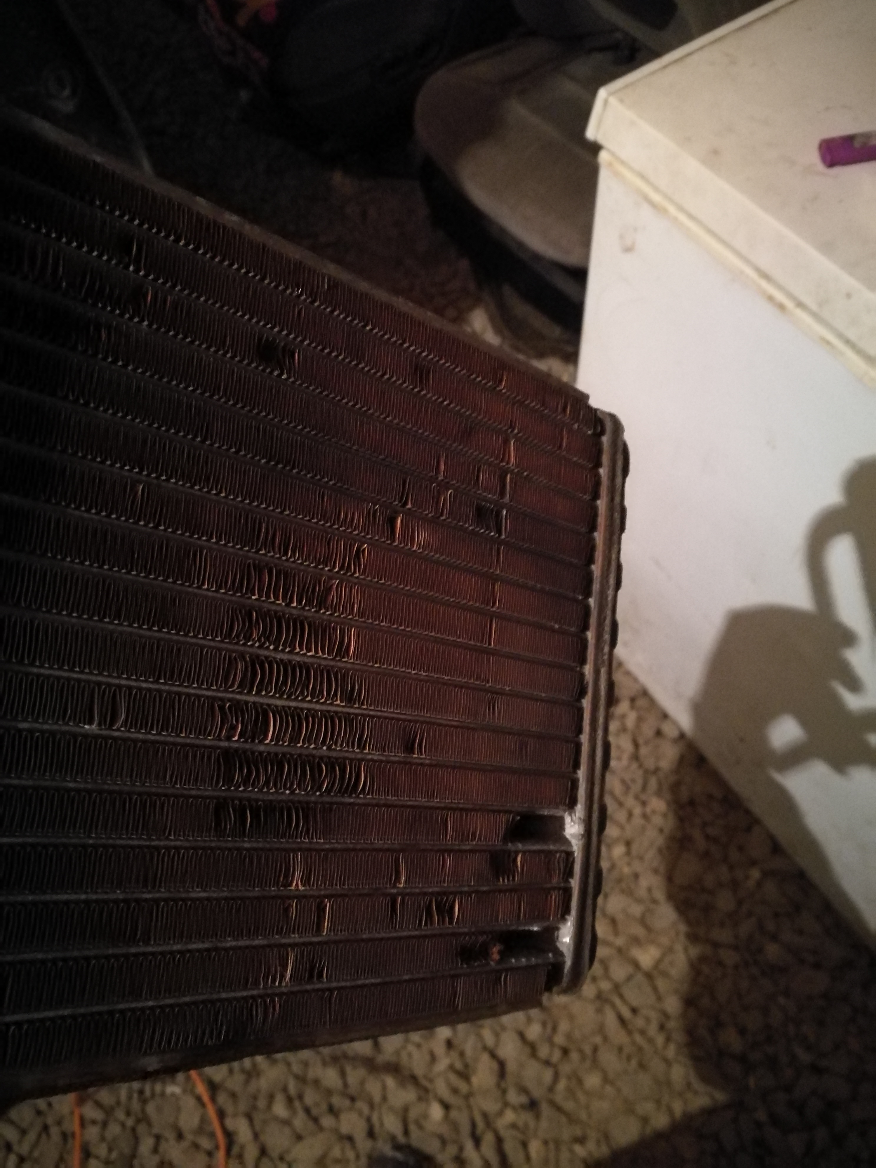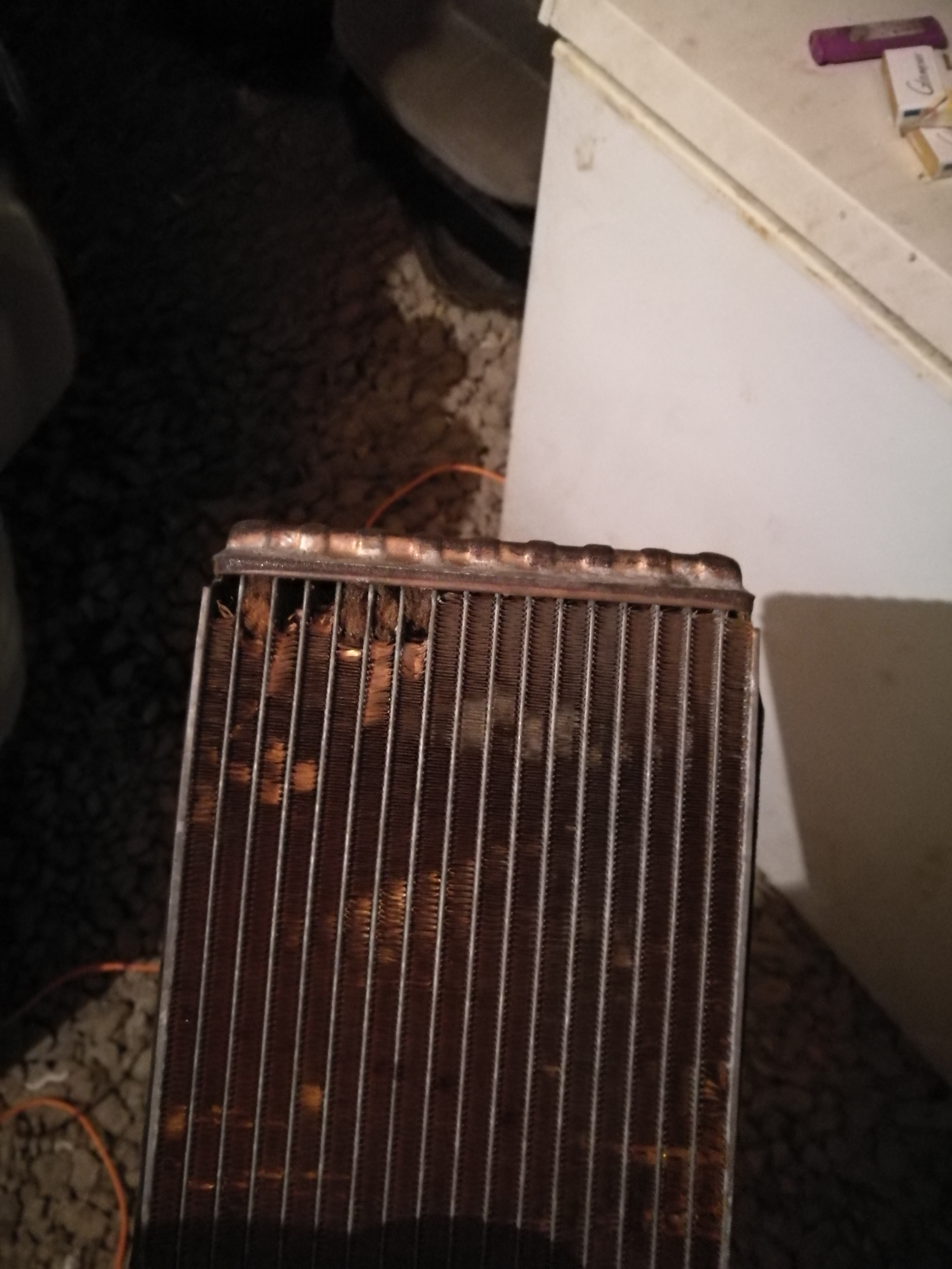 В общем вытащив печку и вынув радиатор, увидел вот что: Была надежда на то, что радиатор только забит, но увы....