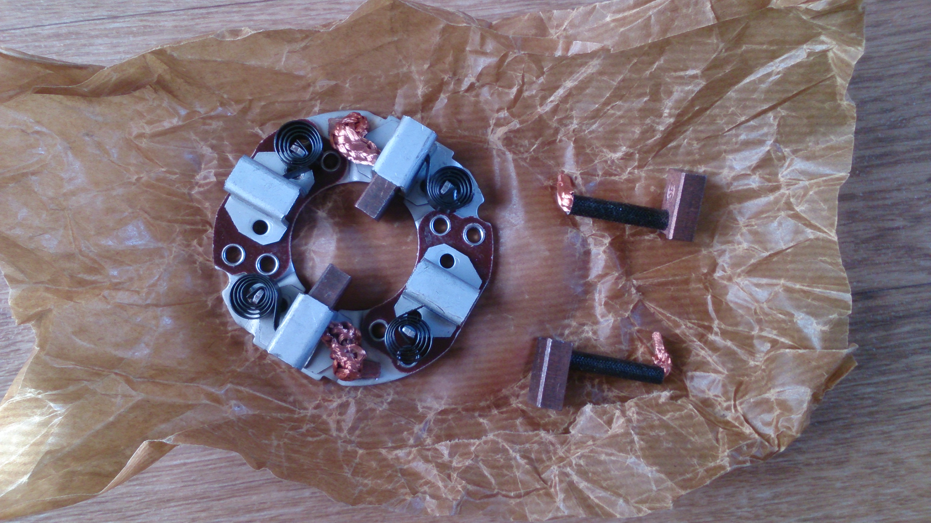 Так я про него и писал в своём посте. Вот как он выглядит (на фото). Это щеточный узел IKA. Как видно - приварены только плюсовые щетки, минусовые надо приваривать самостоятельно.