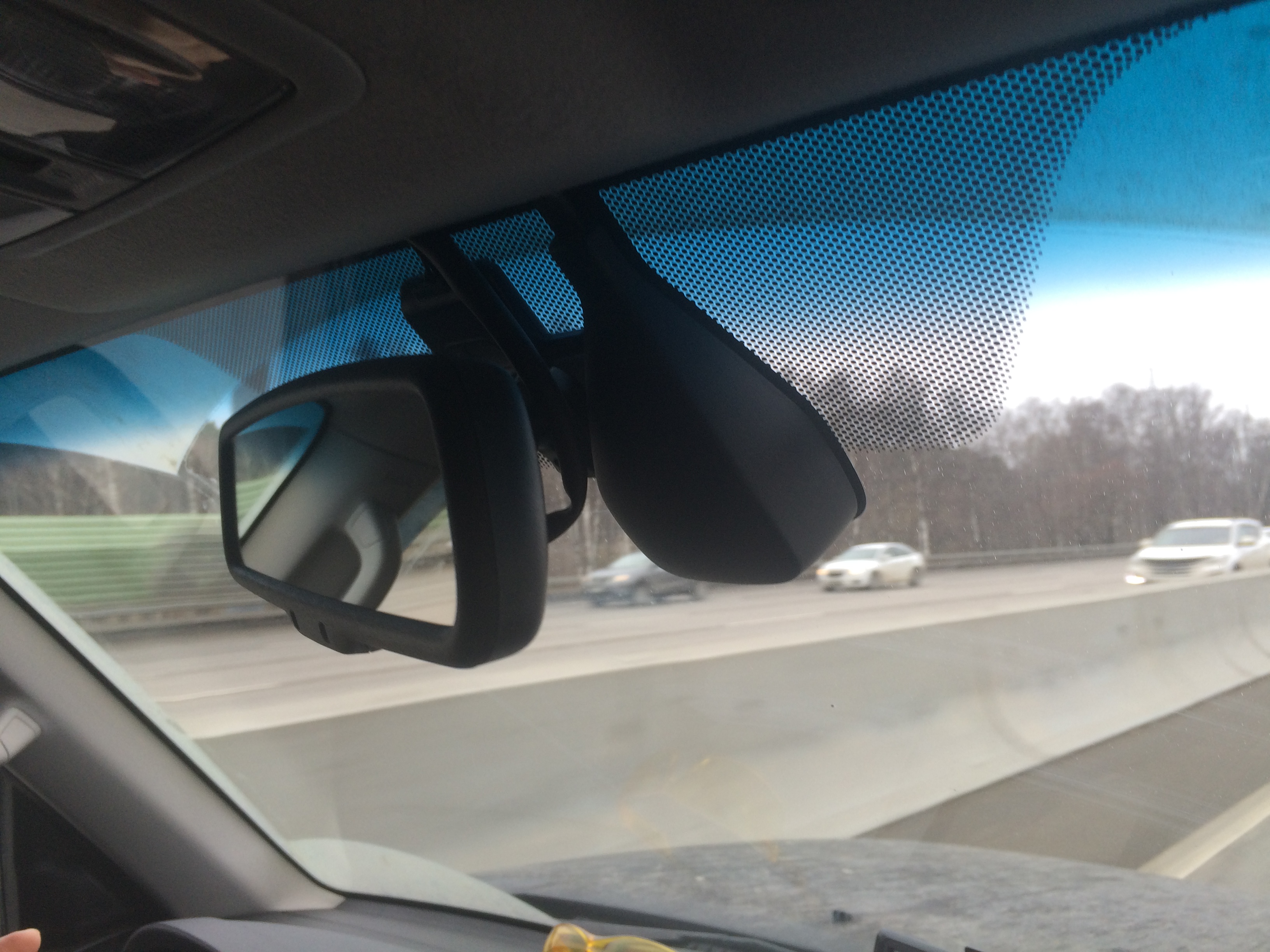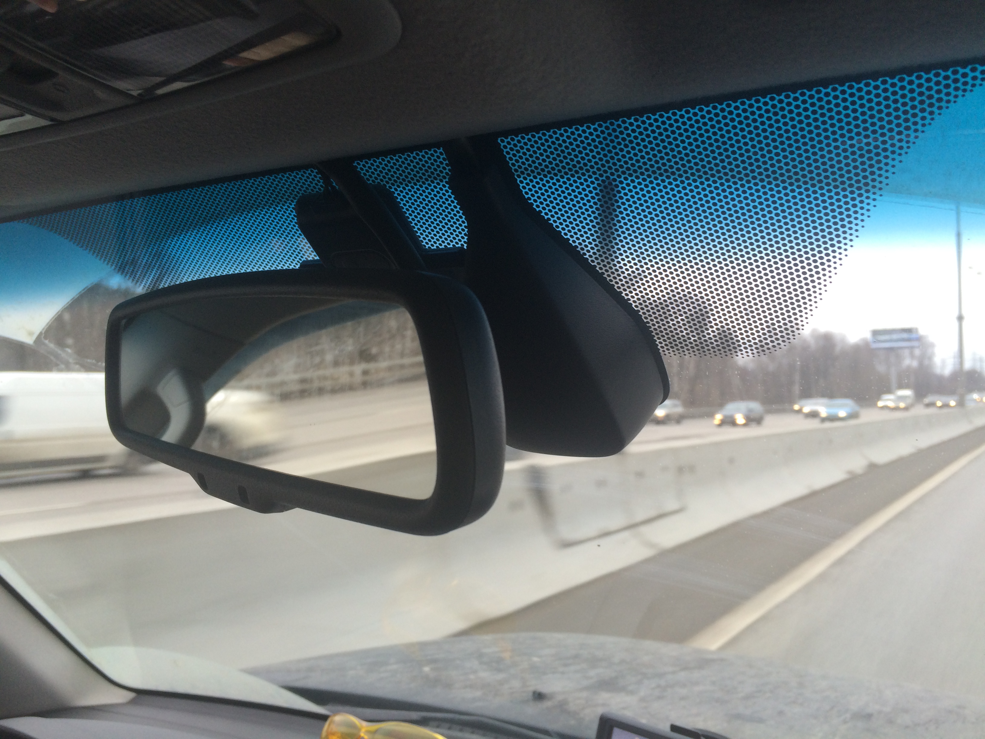 Значительную часть кадра занимает датчик дождя, он ведь посередине стекла. И зеркало - посередине.