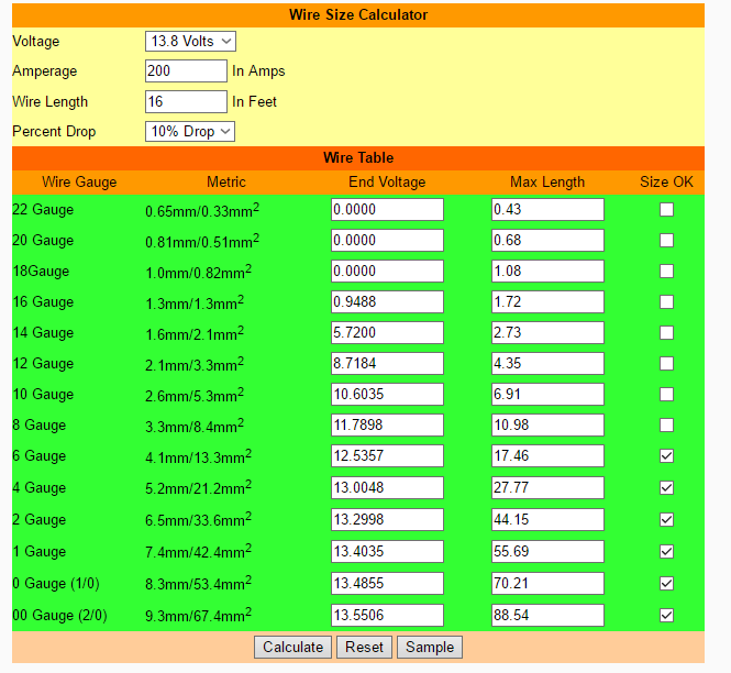 Расчет прикинул исходя из спецификации сайта WARN на квадролебедку 4000lbs/2Ton. Ток брал 200А как максимальный ибо вес машины в полтора раза тяжелее макс. тягового усилия следовательно лебедка будет всегда на пределе работать.