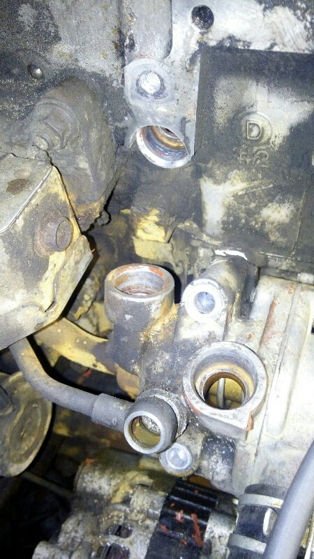 Теплообменник ЕГР. Охлаждает выхлопные газы, подающиеся во впускной коллектор за счёт теплообмена с антифризом. Устанавливался только на моторы с электронным управлением ЕГР и дроссельной заслонкой.
