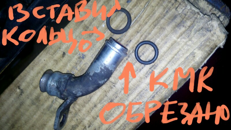 Отрезал подходящее по по диаметру колечко от металлической трубки и вставил в патрубок на ж. металл. Теперь уплотнительное колечко будет прижиматься к стенкам.