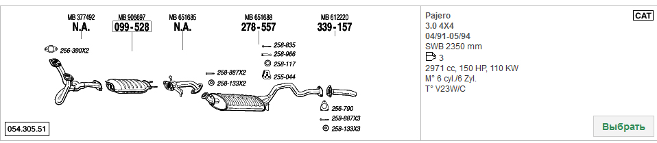 Приёмная труба покупалась на разборе от второй Паджеры, а всё остальное в Экзисте по VINу, неоригинал, но Паджеровский.