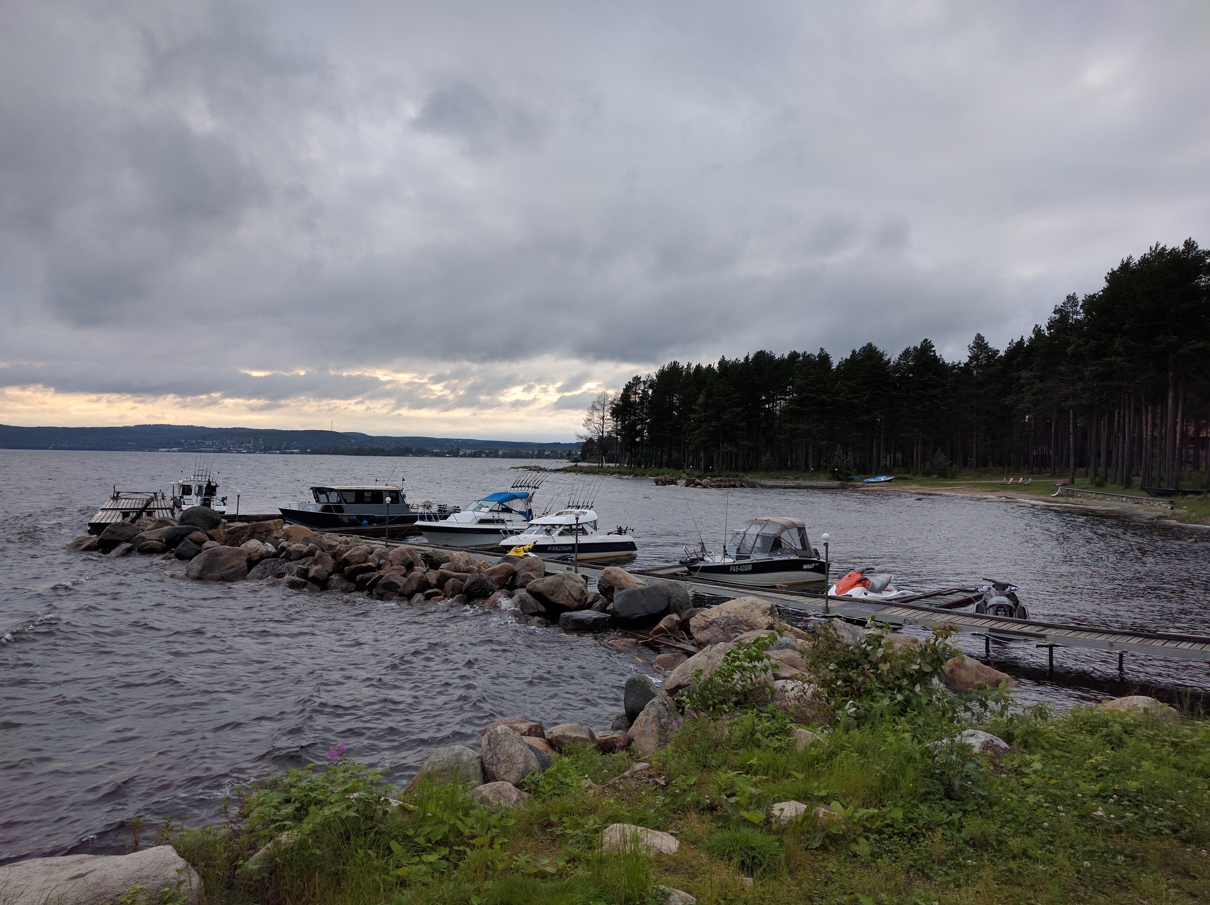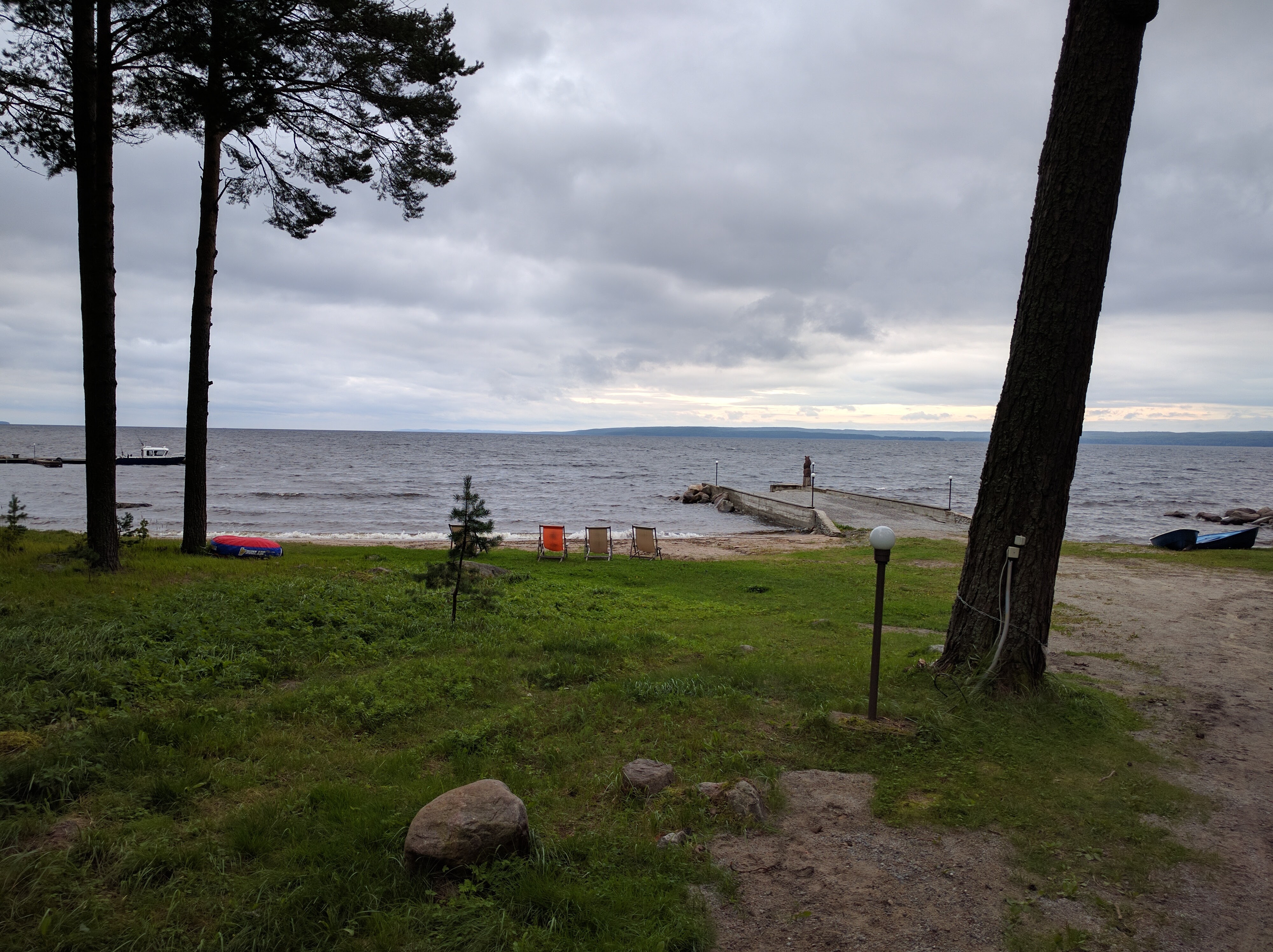 Если сумерки застали вас в районе Медвежегорска и хочется комфорта и чистую кровать, могу посоветовать место под названием "Малая медвежка". Не сильно бюджетно, но терпимо. Место находится на берегу Онежского озера.
