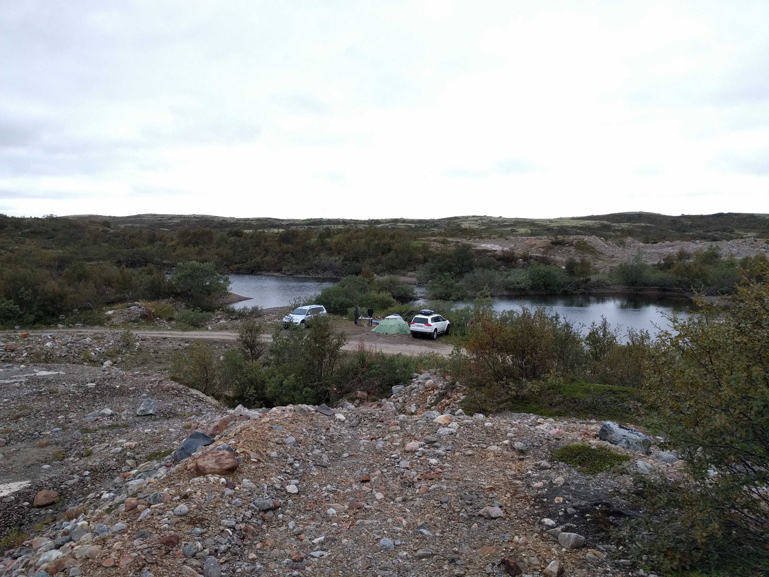 Не обольщайтесь. Большую часть, по крайней мере нашего маршрута, можно было пройти не включая полный привод. Только в одном месте понадобился полный привод и межосевая блокировка, чтобы забраться на пригорок. Но зато в большом количестве броды разной глубины, лужи и плохая грунтовка. Очень плохая грунтовка. Я говорю про участок на Среднем, который вытряс из меня всю душу и пломбы. Свиду нормальная грунтовка, но сцуко ямы в ней расположены таким образом, что какую-бы ты траекторию не выбрал - обязательно попадаешь минимум в одну яму. Таким образом приходится тащить 10 км/ч. несколько часов. В остальном грунтовки просто плохие. Просто вспомнил грунтовку в Исландии, по которой мы ехали 120 км/ч. Но пожалуй самые большие сложности вызвали броды, которыми изобилуют те места. Так что, если у вас нет шнокеля, то в обязательном порядке должны быть вейдерсы, чтобы можно было промерить. У нас не было ни того не другого. Приходилось пару раз разворачиваться и искать другую дорогу. Кстати, если вы считаете что все можно увидеть на спутниковых картах или прочитать в отчетах, то это не так. Очень многое зависит от количества осадков в предыдущие месяцы и зимой. Лужа с неизвестной глубиной может вообще появится в новом месте. При преодолении бродов в устьях рек и ручьёв учитывайте что существуют приливы и отливы. Тут один наш коллега Паджеровод был смыт из устья в Баренцевом море вместе с автомобилем. Отчет про это читайте на Drive.