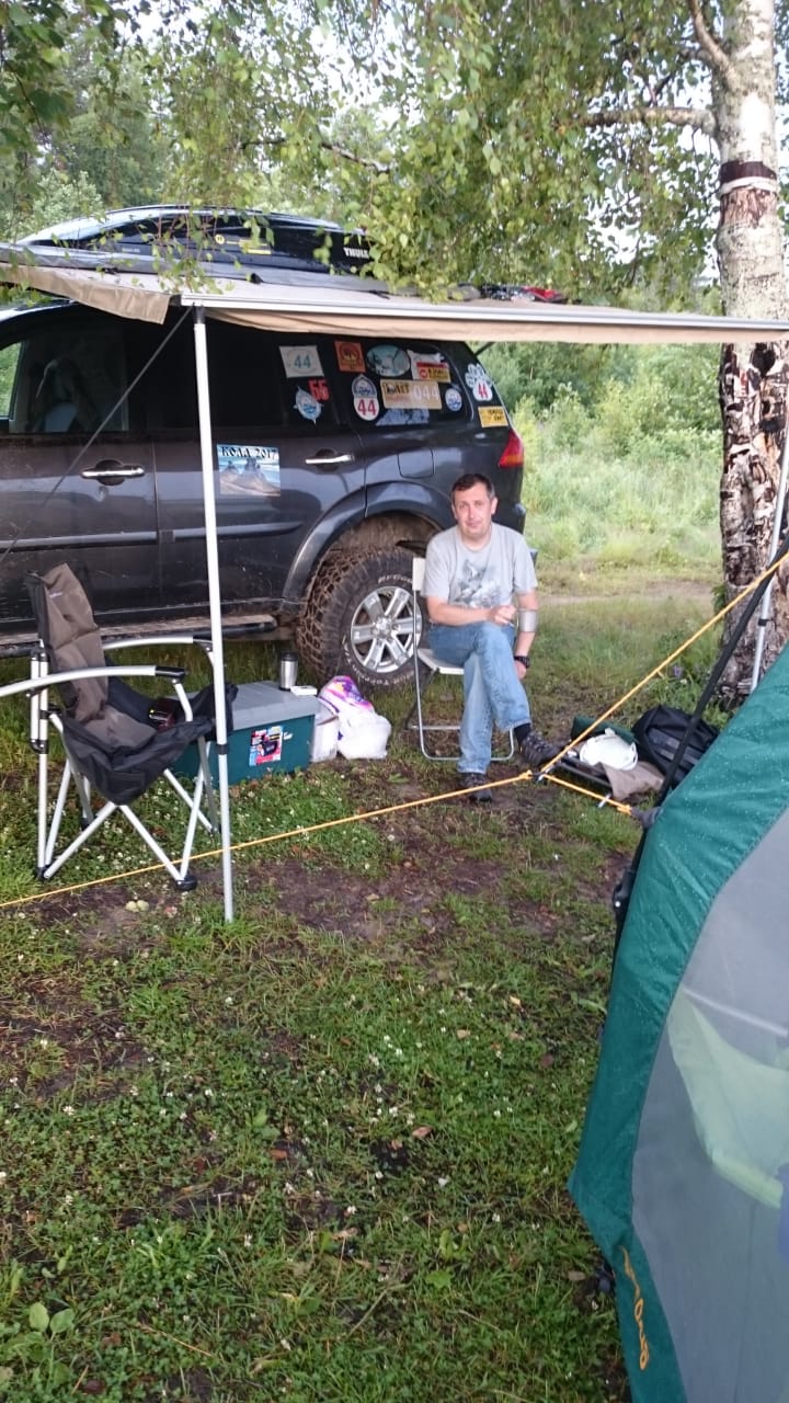 Что использовал например я на МПС2. В пазы поперечин багажника вставлял болты, типа Т-образные, как у THULE для крепления аксессуаров (выточил сам из мебельных болтов). На эти болты прикручивалась алюминиевая рейка 2 м длиной (болты насквозь, сверху гайка-барашек). Больше двух метров смысла делать нет, ибо будет сильно свисать и не получится жестко натянуть тент. К рейке через люверсы крепил тент 2х3 м. По середине тента и по краям в люверсы ставил стойки-опоры, которые представляют из себя ручку для малярного инструмента 2 м длиной. Эти ручки телескопы и можно отрегулировать нужную высоту и наклон тента. Чтобы закрепить тент, в верхний наконечник каждой ручки вставлен болт, на который одевается люверс тента и сверху крепится через шайбу гайкой-барашком. Итого 4 стойки и растяжки. С учетом частичного захода тента на машину (релинги завалены внутрь крыши и рейка с тентом закреплена примерно в 30 см от фактического края борта кузова) пространство под тентом примерно 2х2,7 м. Можно ставить и справа и слева.