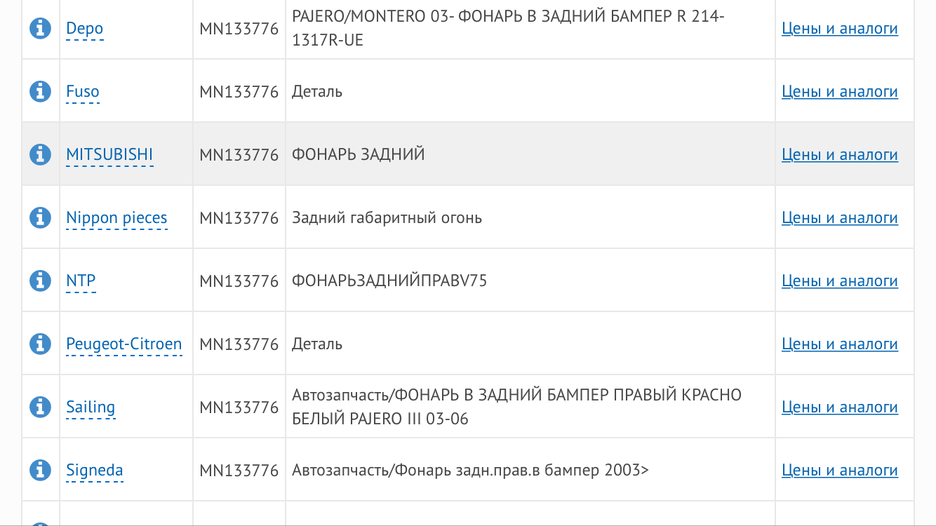 MN133776 ФОНАРЬ ЗАДНИЙ справка о детали 4 057.98 р. >1 22 / 36 4 | 3 МСК 16.08.2017