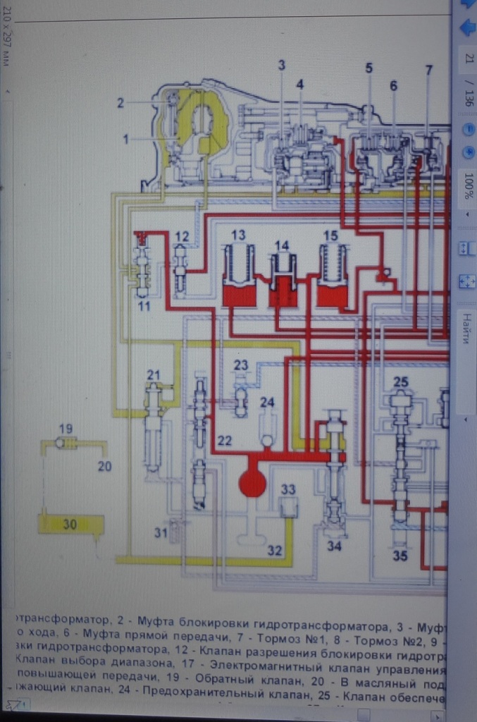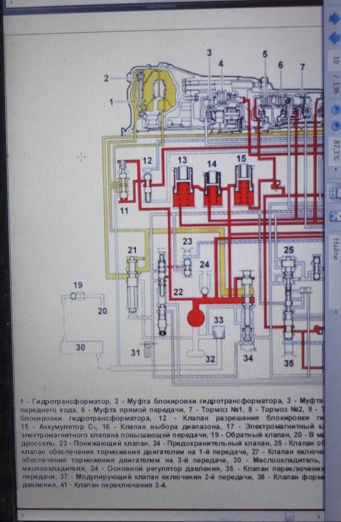 В режиме включенной бдокировки: насос-переключенный переключающий клапан-вход бублика справа-выход бублика слева-переключенный переключающий клапан-поддон. Полностью минуя радиатор. Это вторая коробка. А третья отличается тем, что и при заблокированном бублике малая часть масла идет через радиатор через дроссель, но основная часть мимо радиатора в поддон. Это видно по тем гидросхемам, которые я хочу показать...