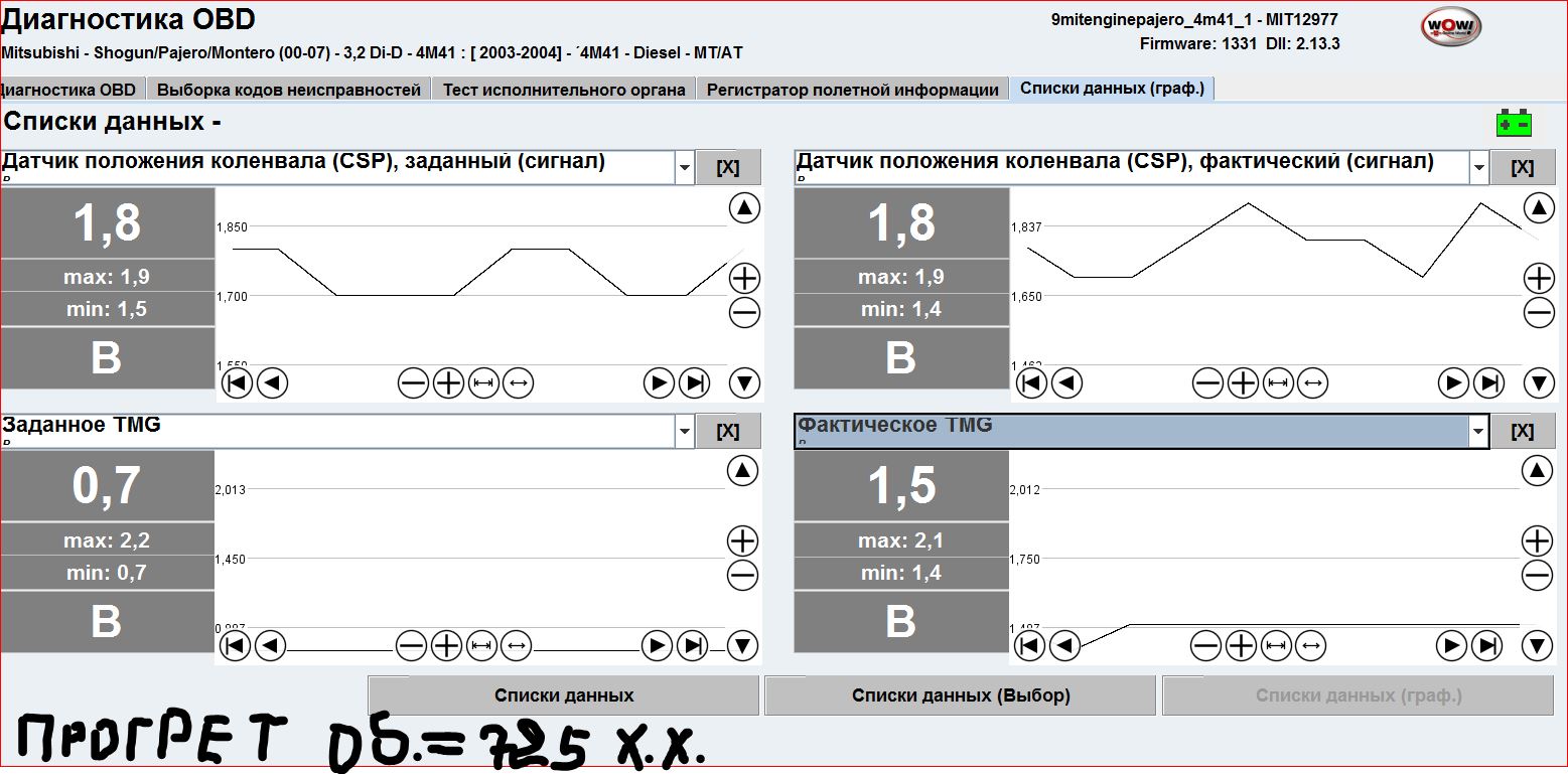 Есть диагностика? В частности интересны показатели температур ож, топлива, и тайминги актуальный и заданныйСергейПрудник писал(а):Проблема в том что дёргается машина на D с тормозом. При прогретом двигателе