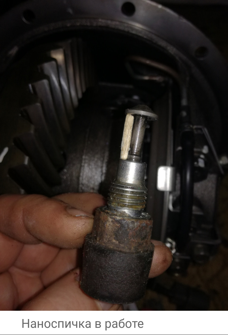 в итоге пока диф не открутили и не сняли крышку, шляпку этого датчика обратно не заправили )))