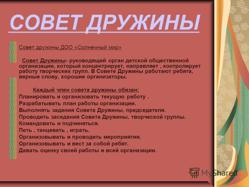 ..., совет дружины - это как ЦИК?! Не знаю, вот и спрашиваю