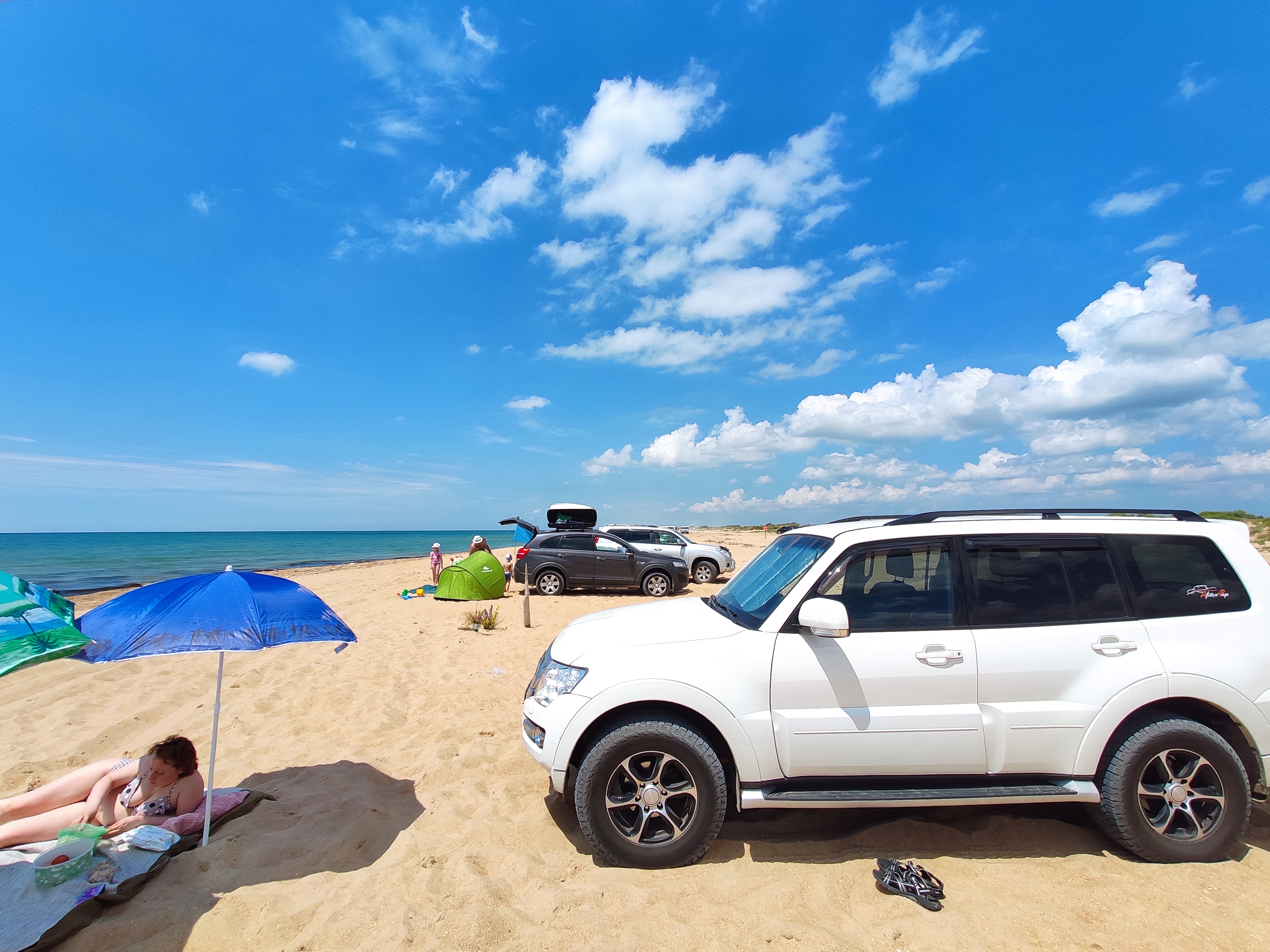 Мне больше дикарями нравится выезжать выше, там есть места с возможностью съезда авто прям на пляж. Паджерик проезжает точно, легковые не всегда