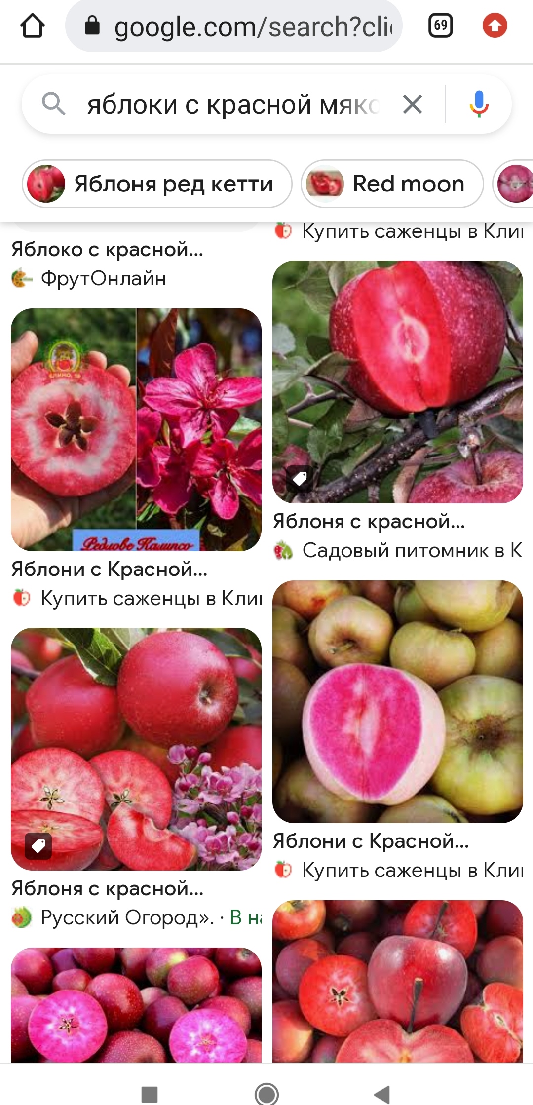 По красным: Яблоня красномякотная Байя Мариса или Яблоня красномякотная Редлав Одиссо