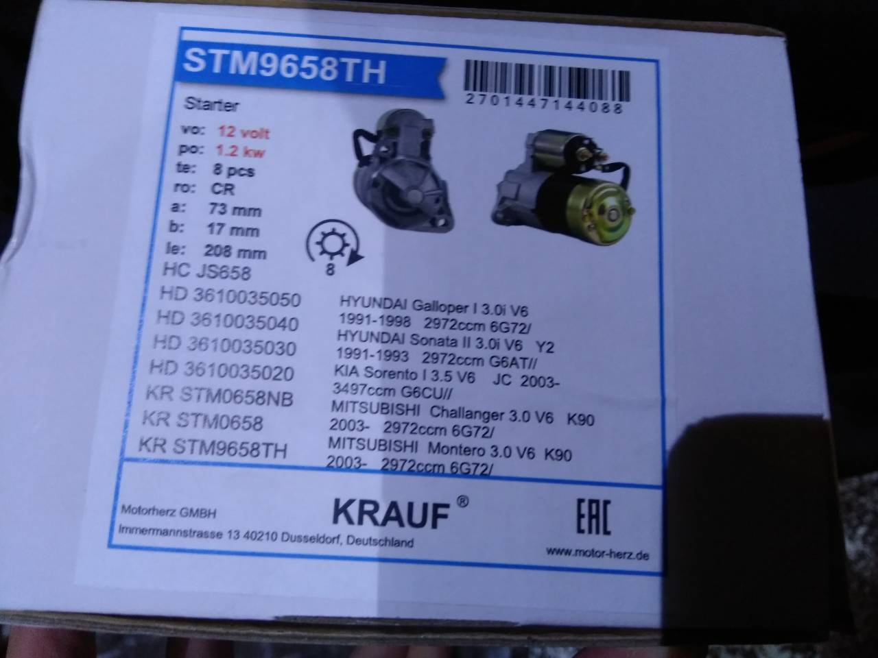У KRAUF нет подбора по вин. Словили неправильный кросс во и всеy-gusev писал(а):Заказали новый стартер, выбирали по каталогу, по вину он должен подходить, но на самом деле стартер оказался точно таким же по длине. Есть у кого нибудь номер "правильного" стартера на 6G74?