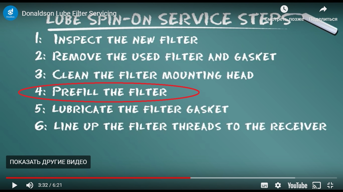 ЗЫ: любителям Ютуба рекомендую посмотреть оф. ролик фирмы "Дональдсон" по замене масляных фильтров: