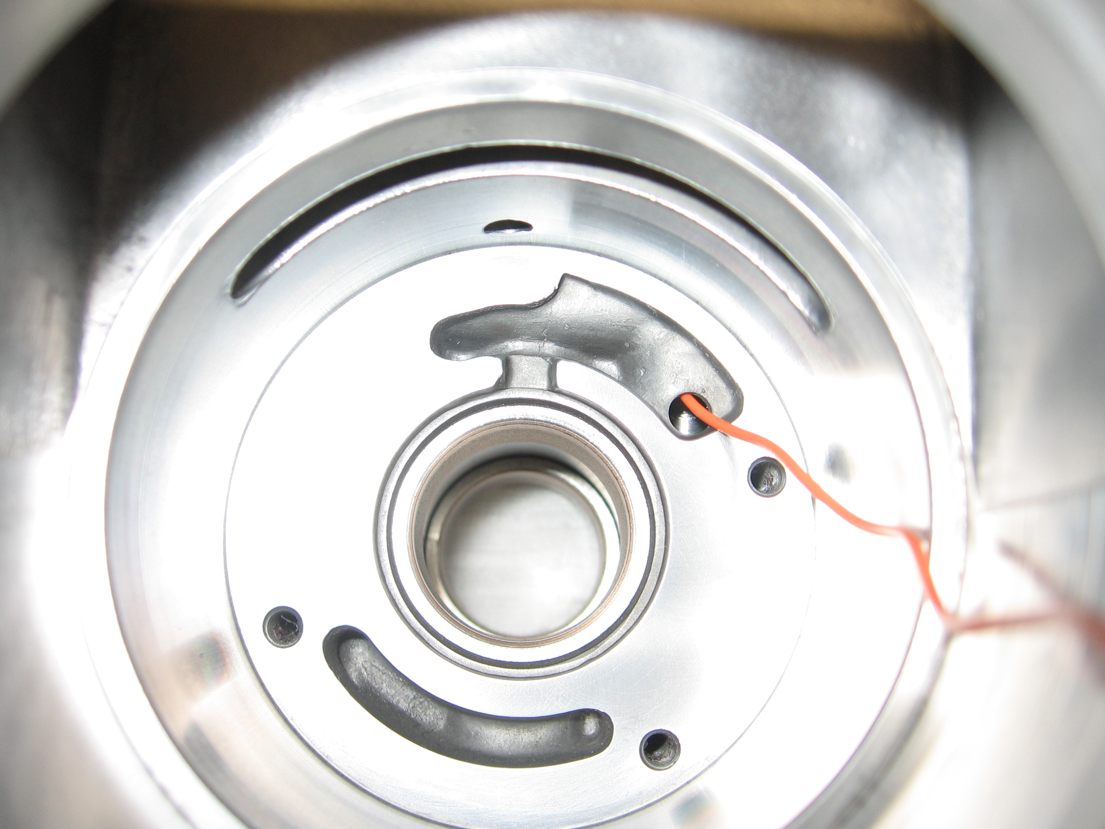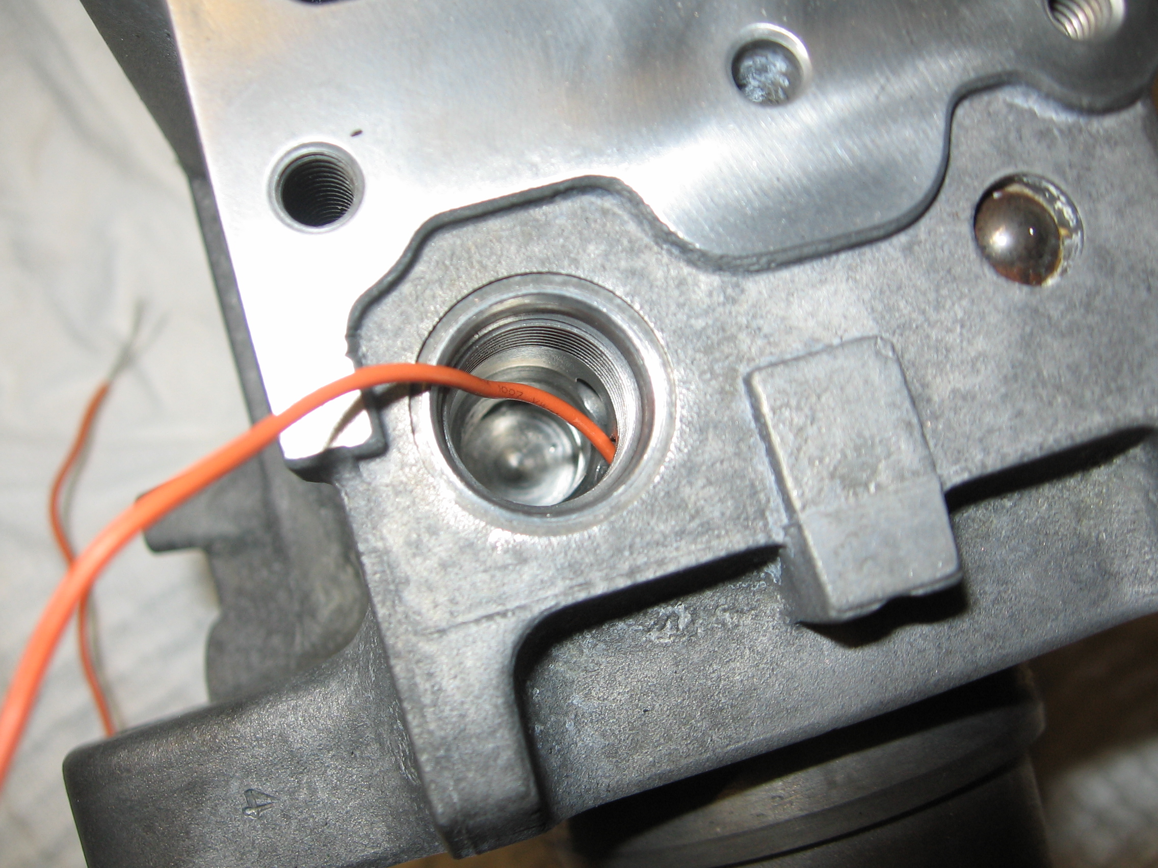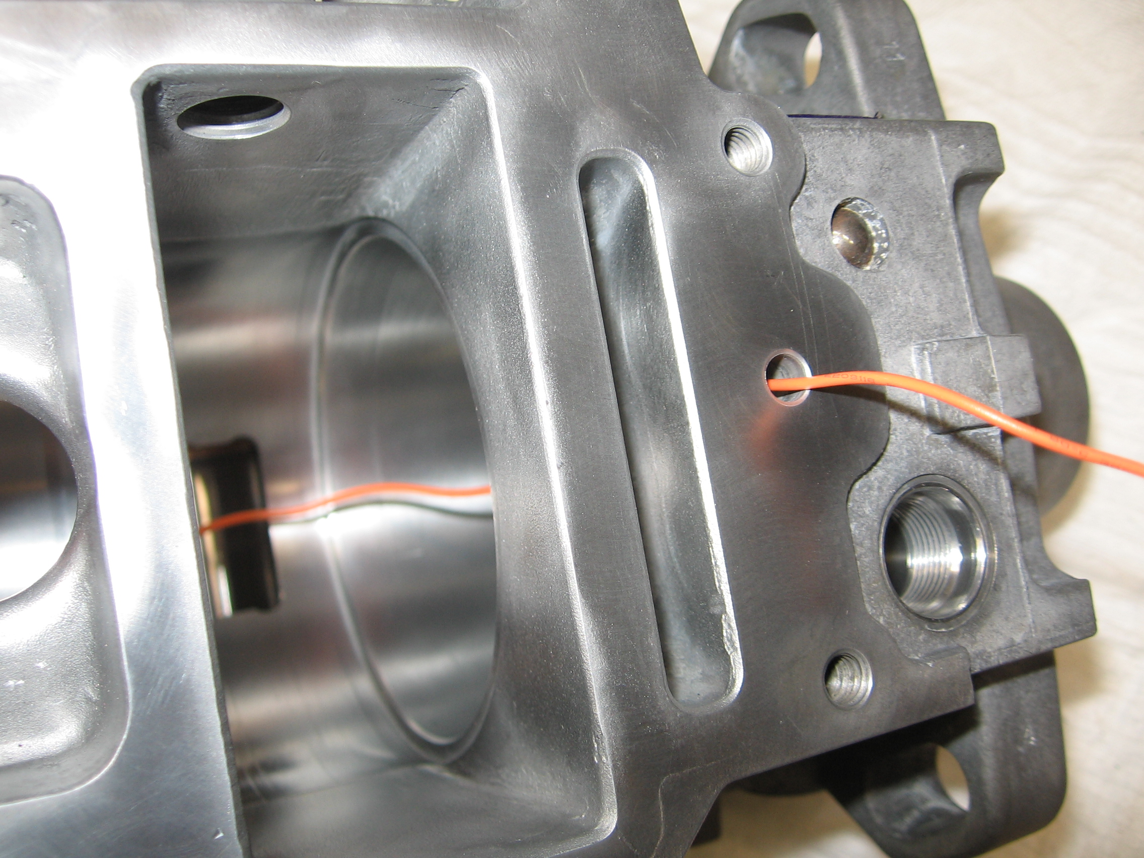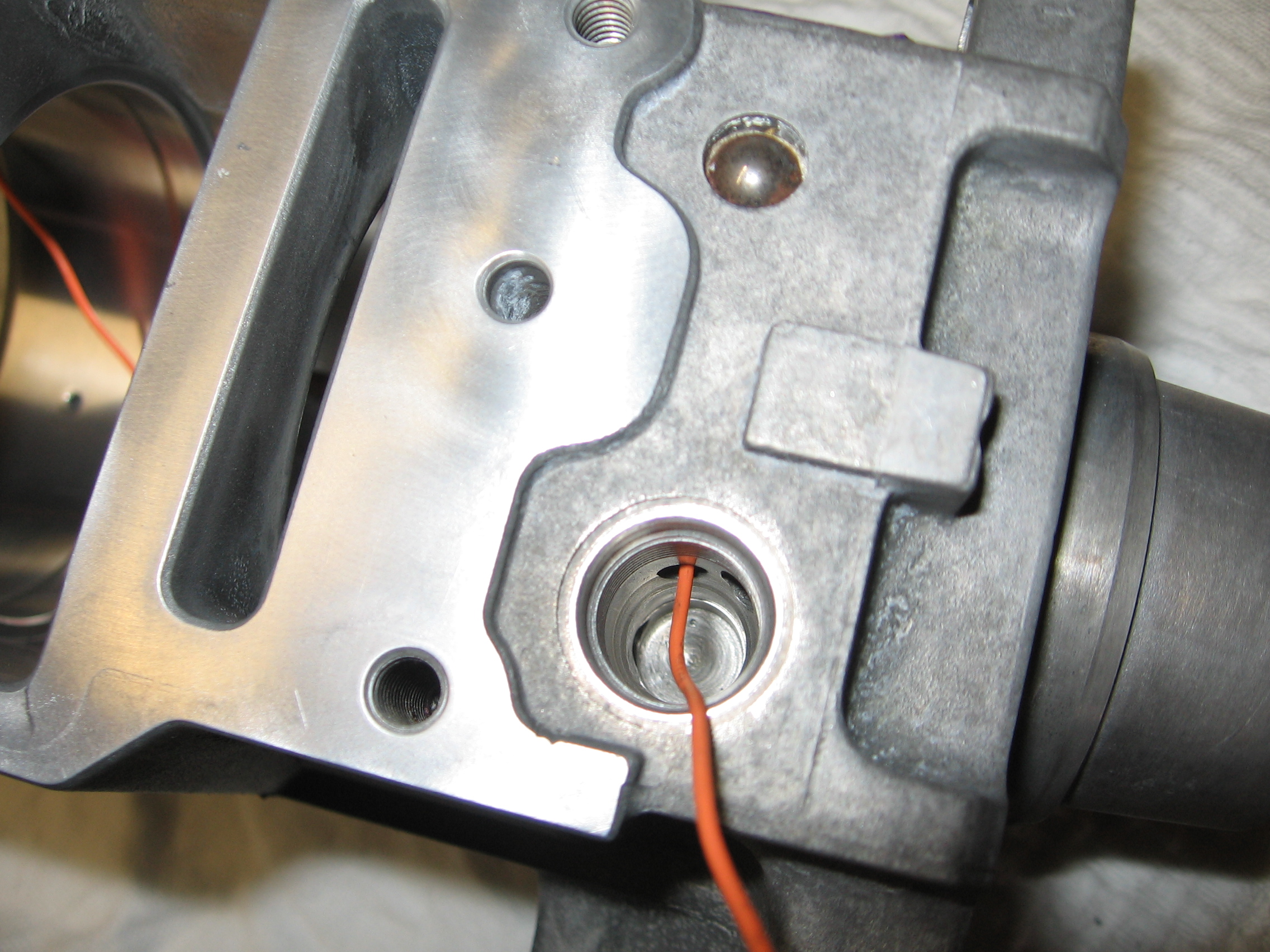 Кстати, канал этот сделан путём двух засверловок, пересекающихся под углом в 90 градусов. Наружные отверстия забиты шариками. Продеть в этот канал провод для наглядности было, мягко говоря, непросто.
