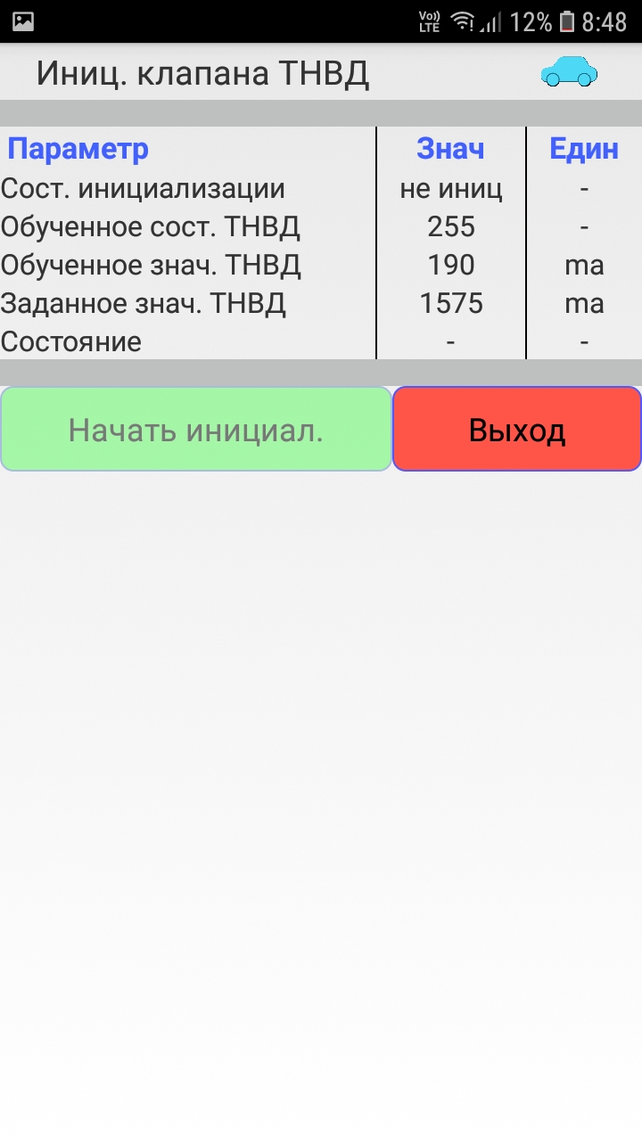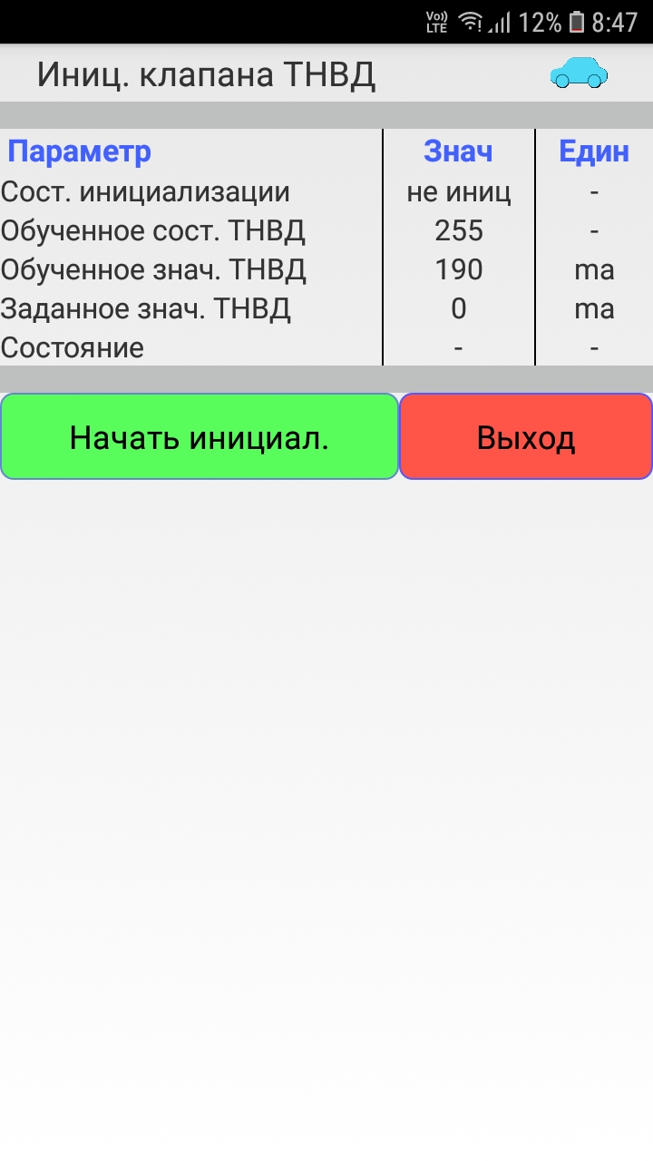 Инициализация клапана, замена ТНВД, это другая функция.