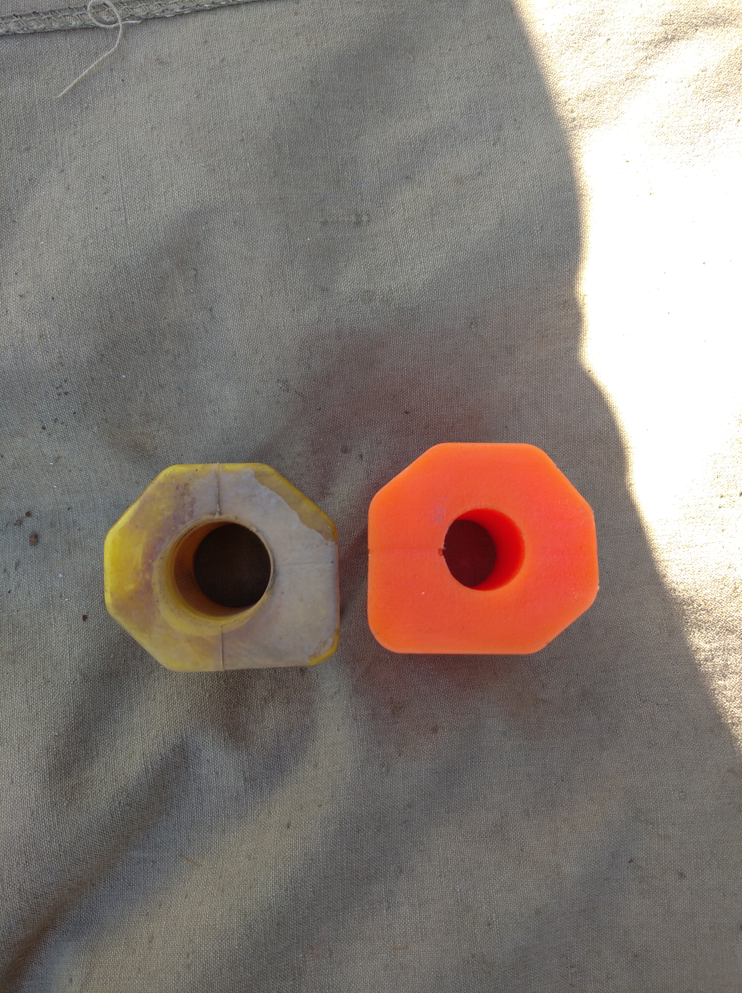 Приветствую уважаемых форумчан! Поставил полиуретановые втулки на рычаги и сам стаб под стойки. Сначала оранжевые были на рычагах, которые практически сразу выскочили из хомутов на природе. Поменял на жёлтые, кторорые пару лет стоят и не доставляют никаких проблем. На стаб под стойки были натянуты с трудом жёлтые неразрезанные втулки, и с этого момента начались проблемы со втулками стоек. Они не ходят больше трех-пяти месяцев, чего раньше не было. И резина и пу. Резиновые рвутся и вылезают кусками, пу выдавливаются шайбами стоек. Узнается это легко, как только появится характерный скрежет и стук при проезде лежачих полицейских. Внимание вопрос: могут так быстро изнашиваться втулки передни стоек стабилизатора из-за того что втулки стаба сидят слишком плотно и стаб в них не проворачивается? Может их разрезать или попробовать под ними стаб смазать чтобы он в них проворачивался при ходе рычага на кочках?