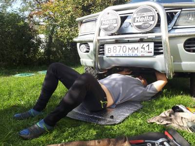 Поднял машину, скинул переднее левое колесо, т.к искомое располагается по ходу движения слева. Немного посветив фонарем, находим. Отсоединил разьем, он был треснут, но вроде цел. Открутил болт, вынул датчик. Вставил новый, подключил. Теперь, как грится, момент истины - повернем ключ и посмотрим, исчез ли чек. Не исчез. У меня упало. Жена,видя мое грустное хлебало, предложила - а давай клемму скинем, вдруг прокатит? Она программист и есть у нее такой прием: сто бед - один ресет. Скинули, подождали, вернули. Заводим - порядок, чистая приборка! Ставим колесо на место, радуемся)) Как итог, мы удачно починились и не выбились из графика, хоть конец поездки пришлось переиграть. Мы хотели провести вечер на Эльбрусе, но из-за ремонта уже не успевали. К тому же там сильно испортилась погода, подьемник закрыли и мы не расстроились.