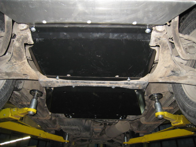 Кто как извращается. Я когда взял себе машину, сразу у ОД спросил про защиту мне предложили 2 на выбор из железа и аллюминия но по очень дорогой цене. Тогда я приехал в exist и у них купил питерскую защиту "Шериф" за 4000 руб из 3 листов двигатель, коробка, раздатка. Ставил сам на эстакаде, никаких проблем, всё ставиться в штатные места, езжу с ней уже три года, никаких проблем. Максимум, что было это зимой снег набивался на неё, после того как я по полям ездил, и он начинал дребезжать об двигатель, на мойку заезжал водой снег смывали и всё.