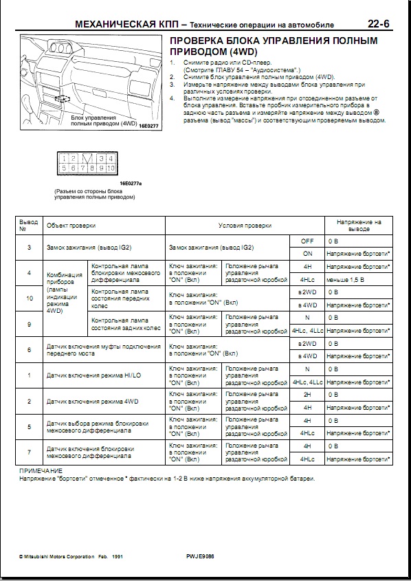 отключил разъем от блока взял его в руку. И что получилось: Вставляю в разъем 2 и разъем 8 переключаю ручку раздатки в положение 4H напряжения нет, в 4HLc, в 4LLc напряжение появляется. Переставлял в другие разъемы, вообщем полное несоответсвие руководству.