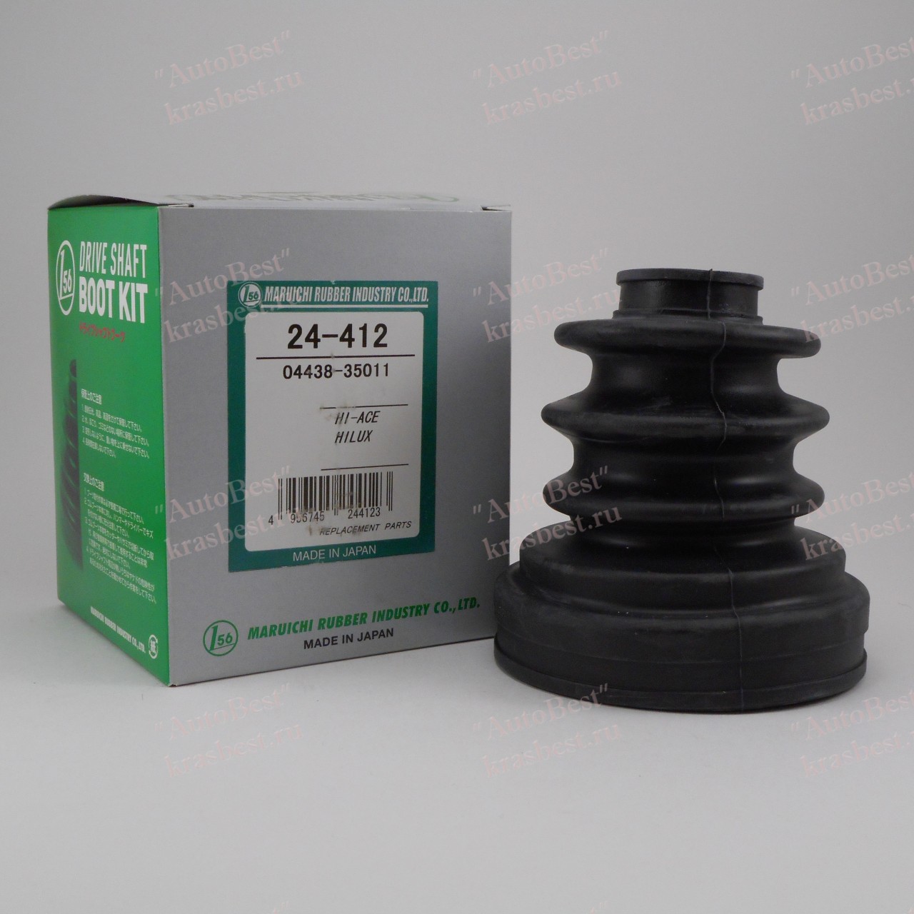 Сегодня обнаружил что правый передней наружний пыльник шруса порван. Заехал в магазин , родного пыльника не было в наличии , подобрали по размеру 24-412 Maruichi . Маленькое отверстие пыльника точно такое же как и родной, большое немного больше но не критично, обжалось хомутом . Стоит как влитой . Цена вопроса 400 руб, ну и все-таки он made in Japan . а это будет получше чем от наших Тазов . На упаковке написано что пыльник от Toyota Hiace и Toyota Hilux Surf .